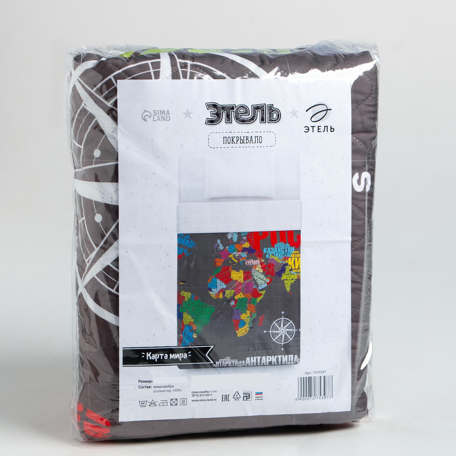 Покрывало 1.5-спальное "Этель. Карта мира", 145x210 см, микрофибра, Этель, Россия