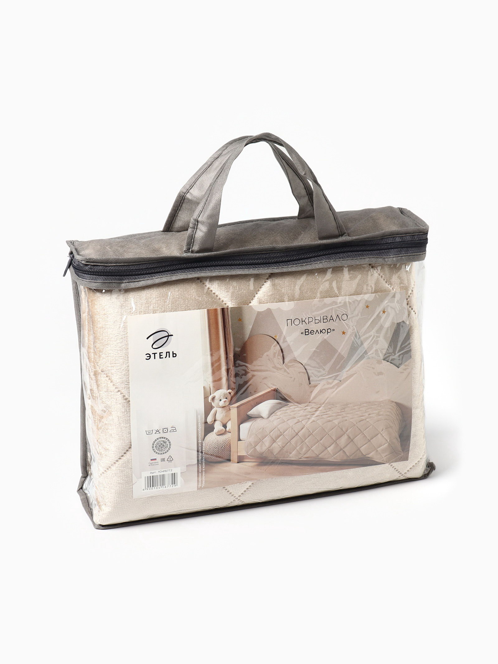 Рекомендации по уходу: Барабанная сушка при низкой температуре, Глажка при 110 ℃, Не отбеливать, Стирка при 30 ℃ Размер упаковки: 29 x 8 x 37 см. Температурное ограничение: Нет Состав ткани: Полиэстер Цвет: Бежевый Ткань: Велюр Размер, см: 120 x 200 Фактура материала: Велюровый Размер: 1.5-спальное см Вид упаковки: PVC-сумка Назначение: Детям Декоративные элементы: Отстрочка Материал наполнителя: Синтепон Тематика: Однотонная Комплектация: Покрывало tnved: 9404909000 | ||