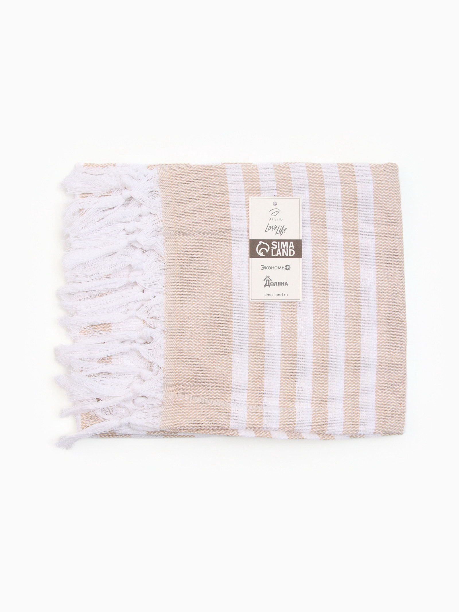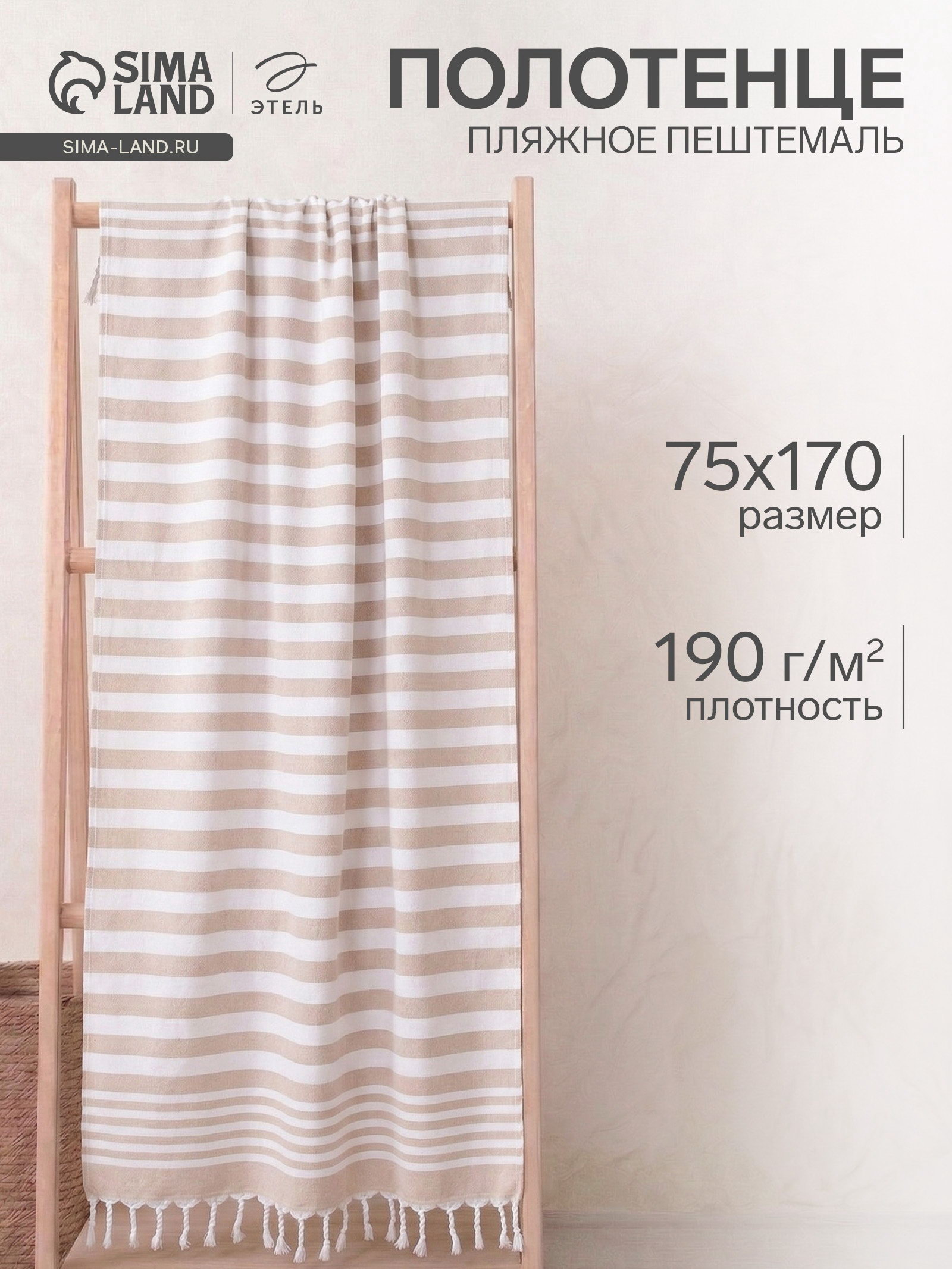 Полотенце пляжное пештемаль 75x170 см, бежевое, 40x30x0.8 см., Этель, Китай