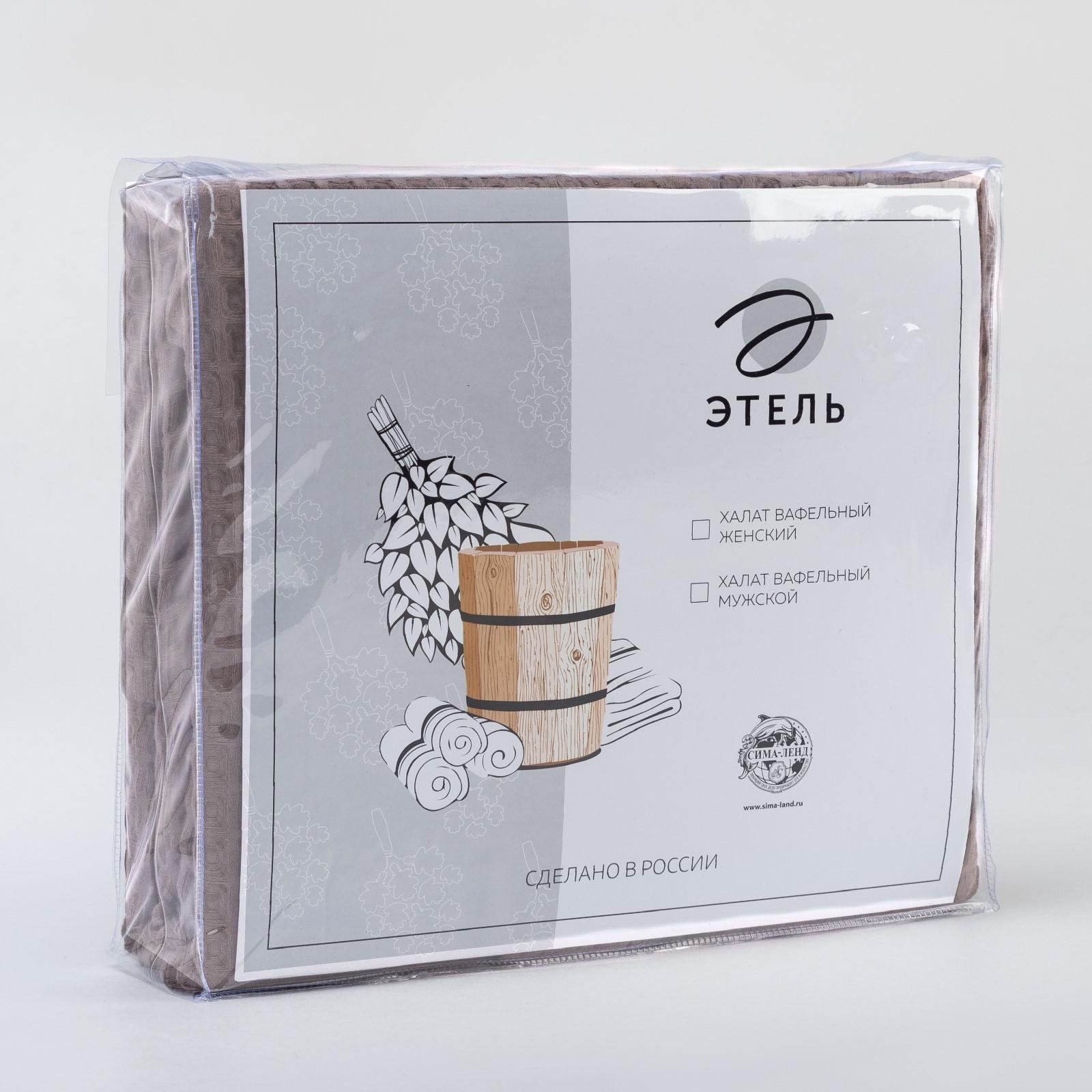 Халат вафельный женский удлинённый "Boho" размер 54-56, цвет мокко, 100% хлопок, 290 г/м2, Этель, Россия