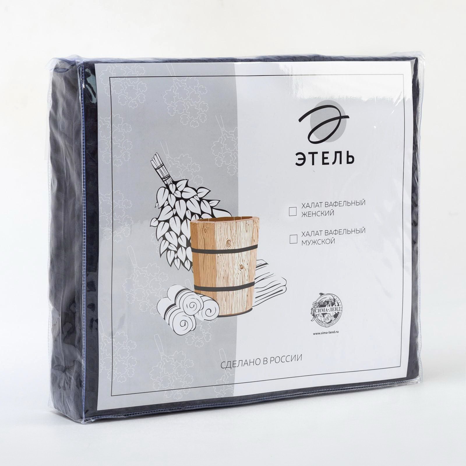 Халат вафельный мужской удлиненный "Boho" размер 50-52, цвет тёмно-серый, 100% хлопок, 290 г/м2, Этель, Россия