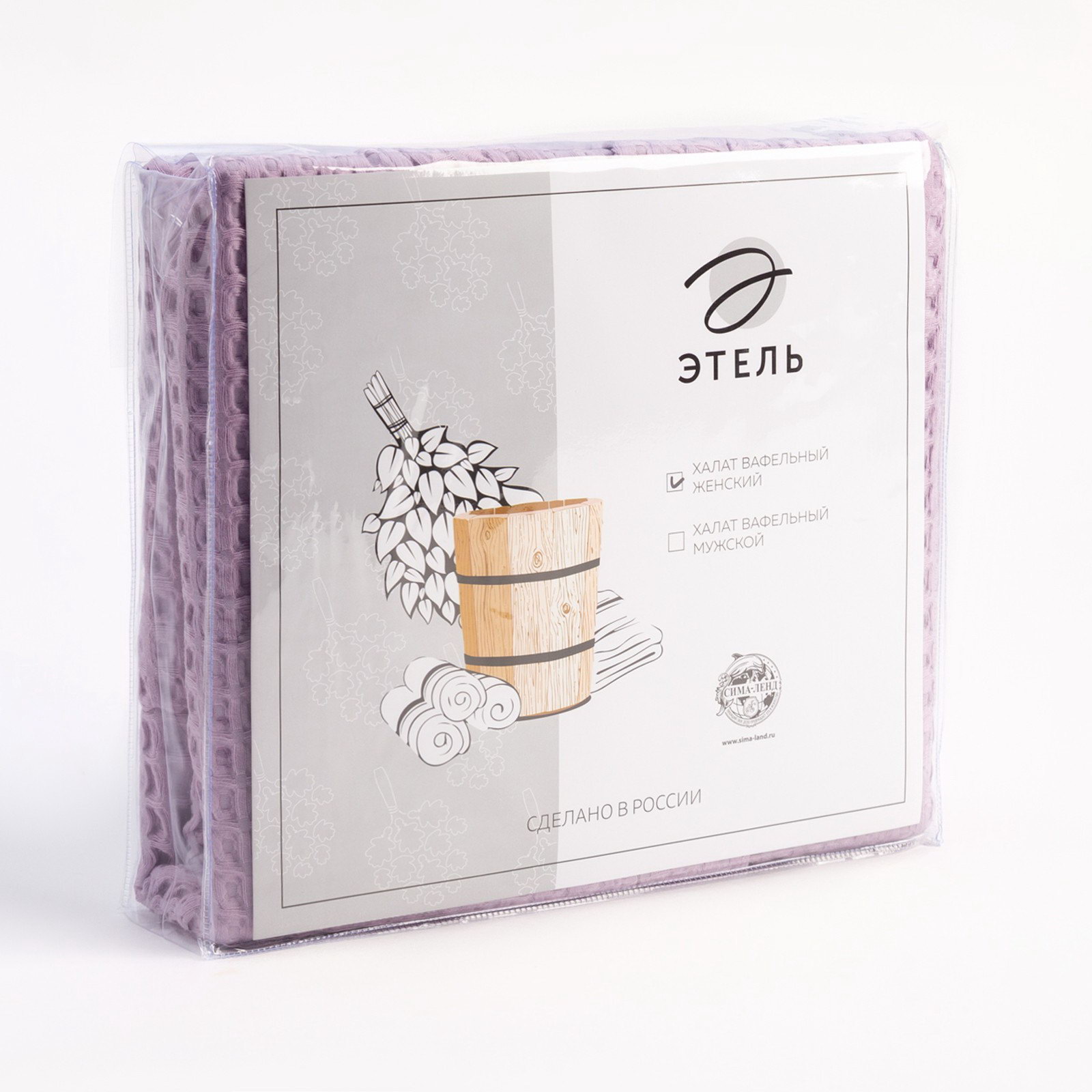 Халат вафельный женский удлинённый "Boho" размер 42-44, цвет сиреневый, 100% хлопок, 290 г/?2, Этель, Россия