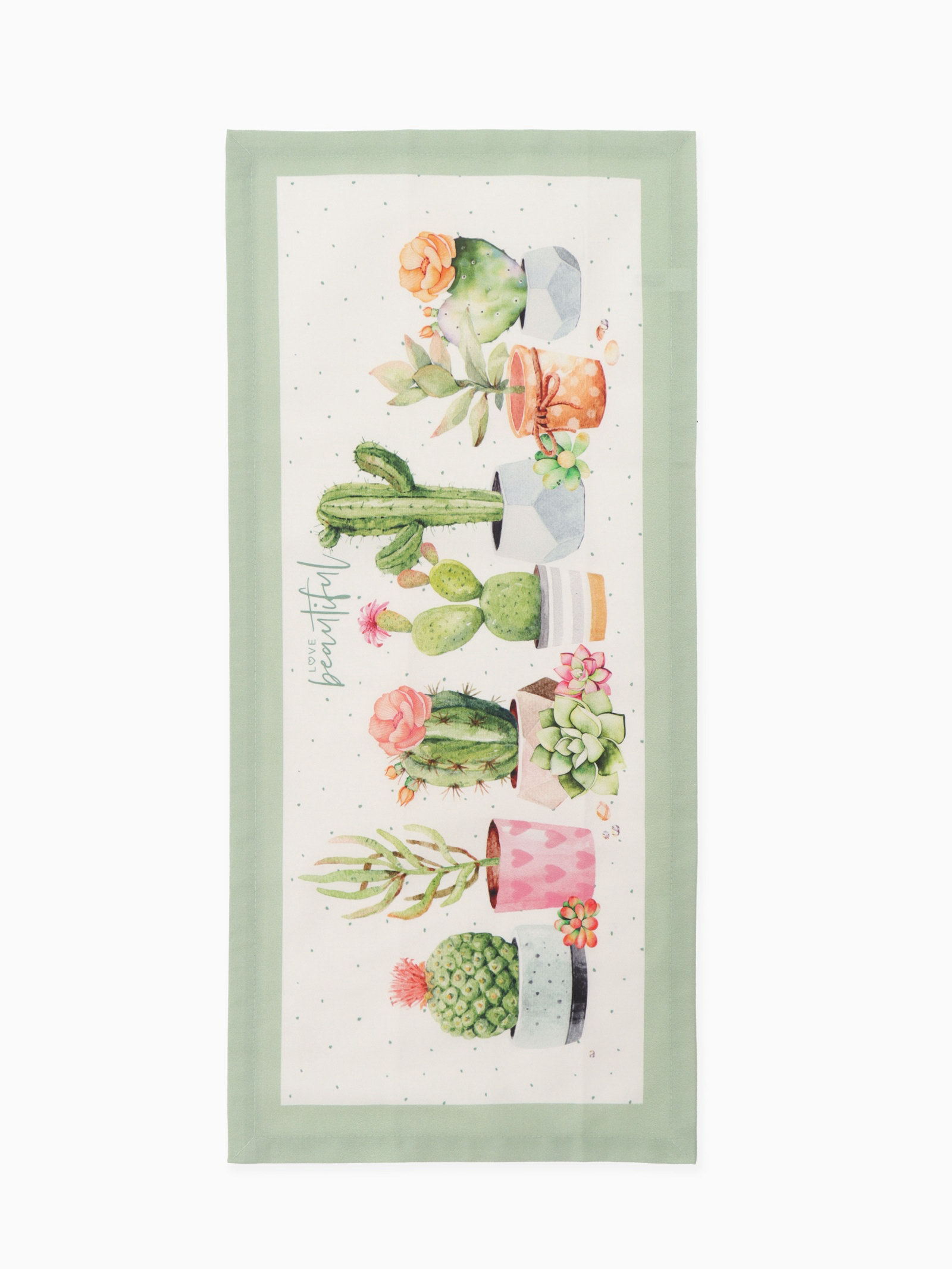 Дорожка на стол "Кактусы" 30x70 см, 100% хлопок, саржа 190 г/?2, белая/зелёная, 30x70 см., Этель, Россия