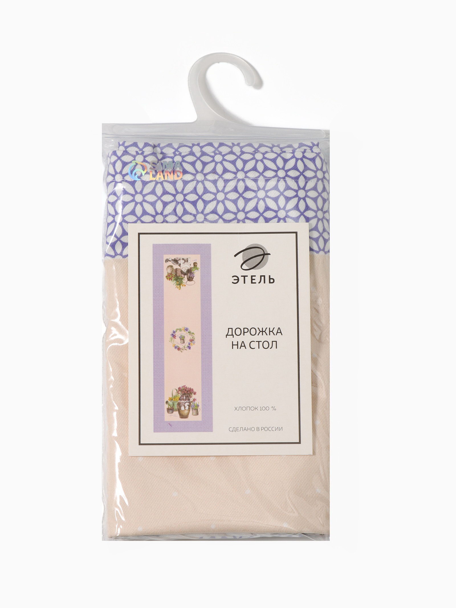 Дорожка на стол "Этель. Уютные коты", 40x146 см, 100% хлопок, саржа 190 г/?2, бежевая/синяя, 40x146 см., Этель, Россия
