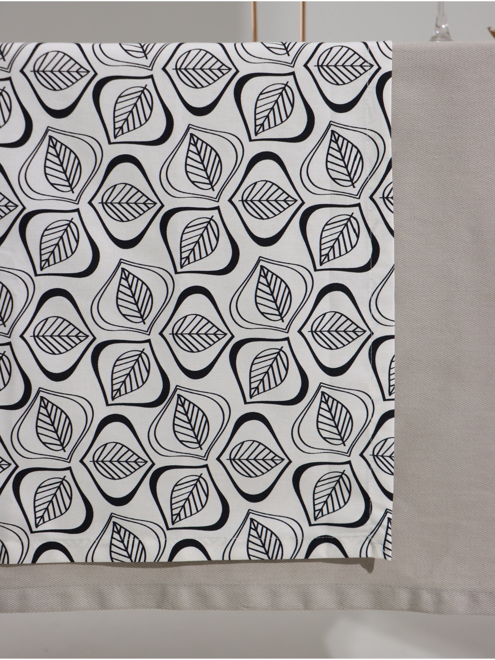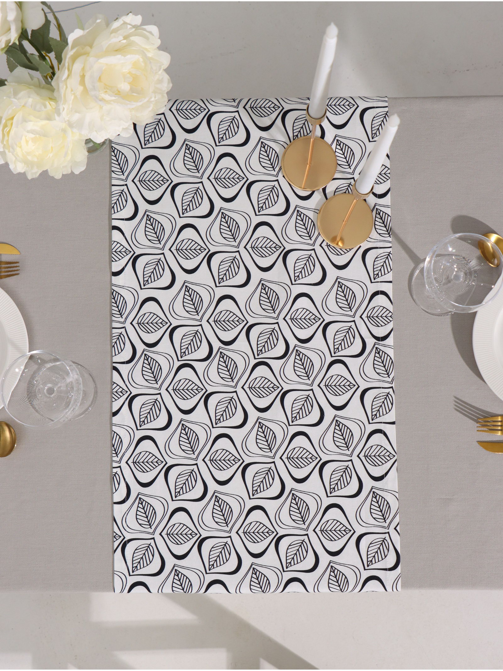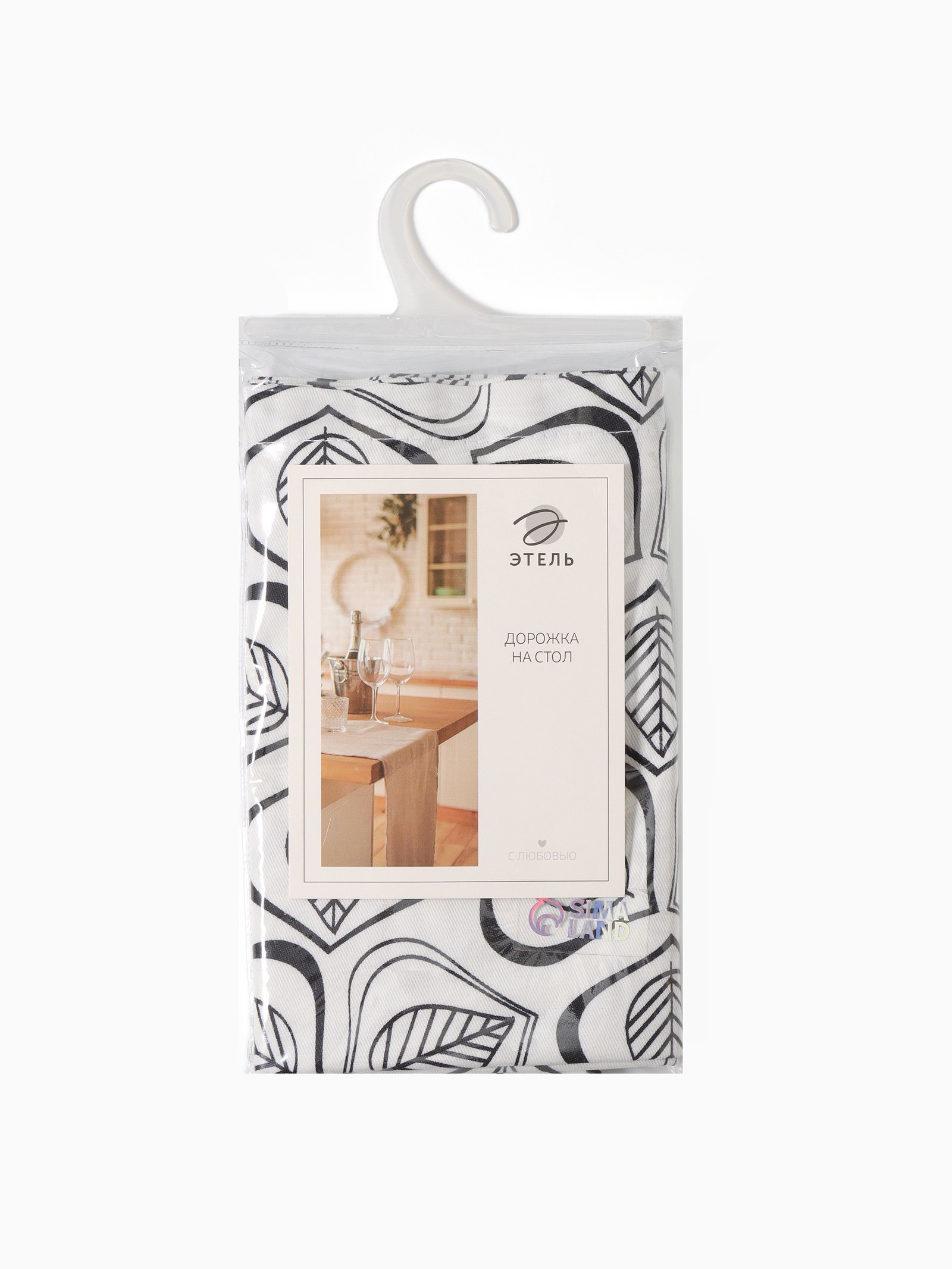 Дорожка на стол Leaves 40x149 см, 100% хлопок, саржа 190 г/?2, белая/чёрная, Этель, Россия