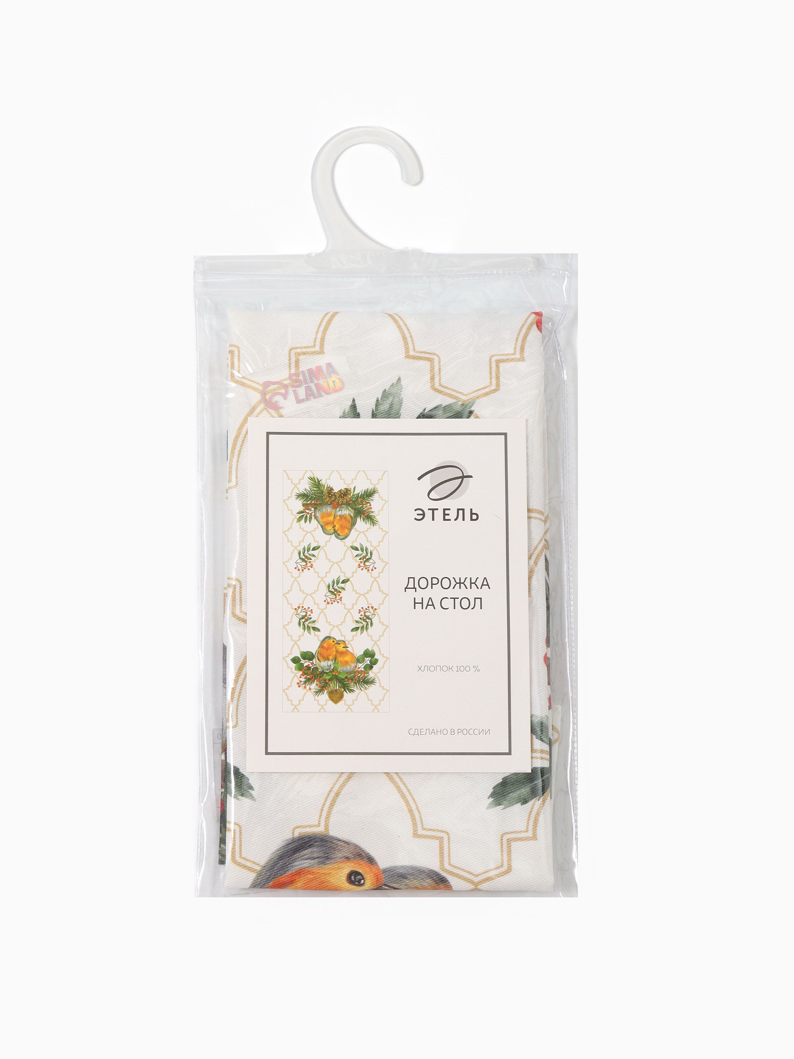 Дорожка на стол новогодняя Robin 30x70 +- 5 см, 100% хлопок, саржа 190 г/?2, белая, Этель, Россия