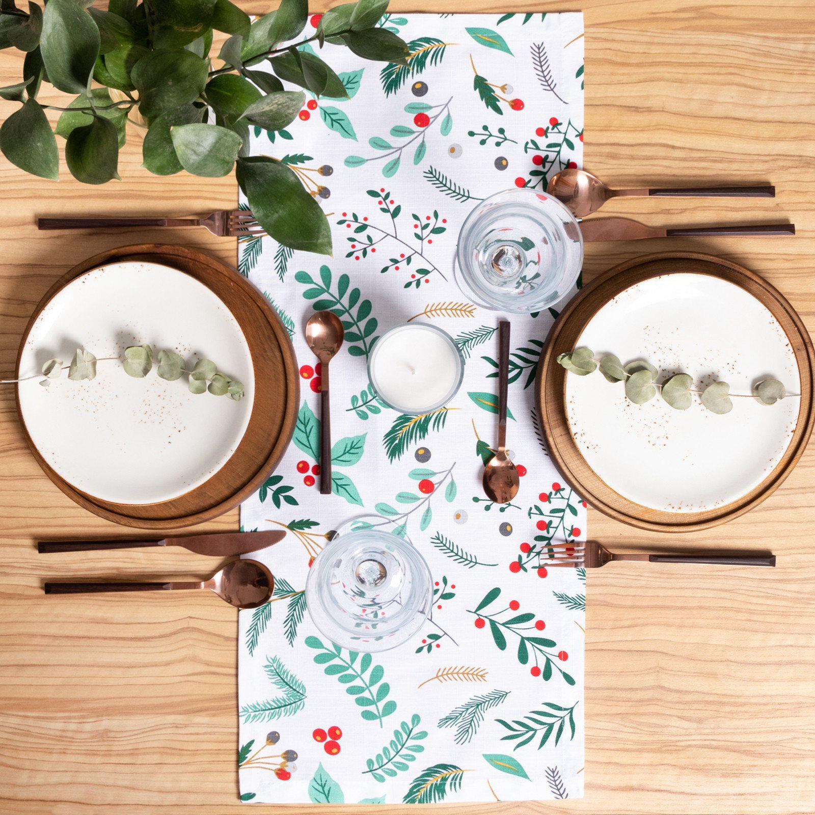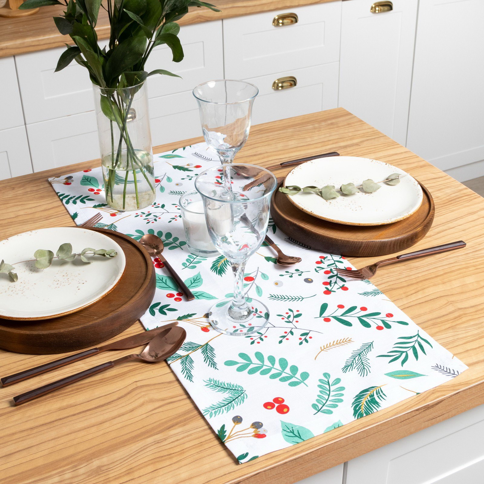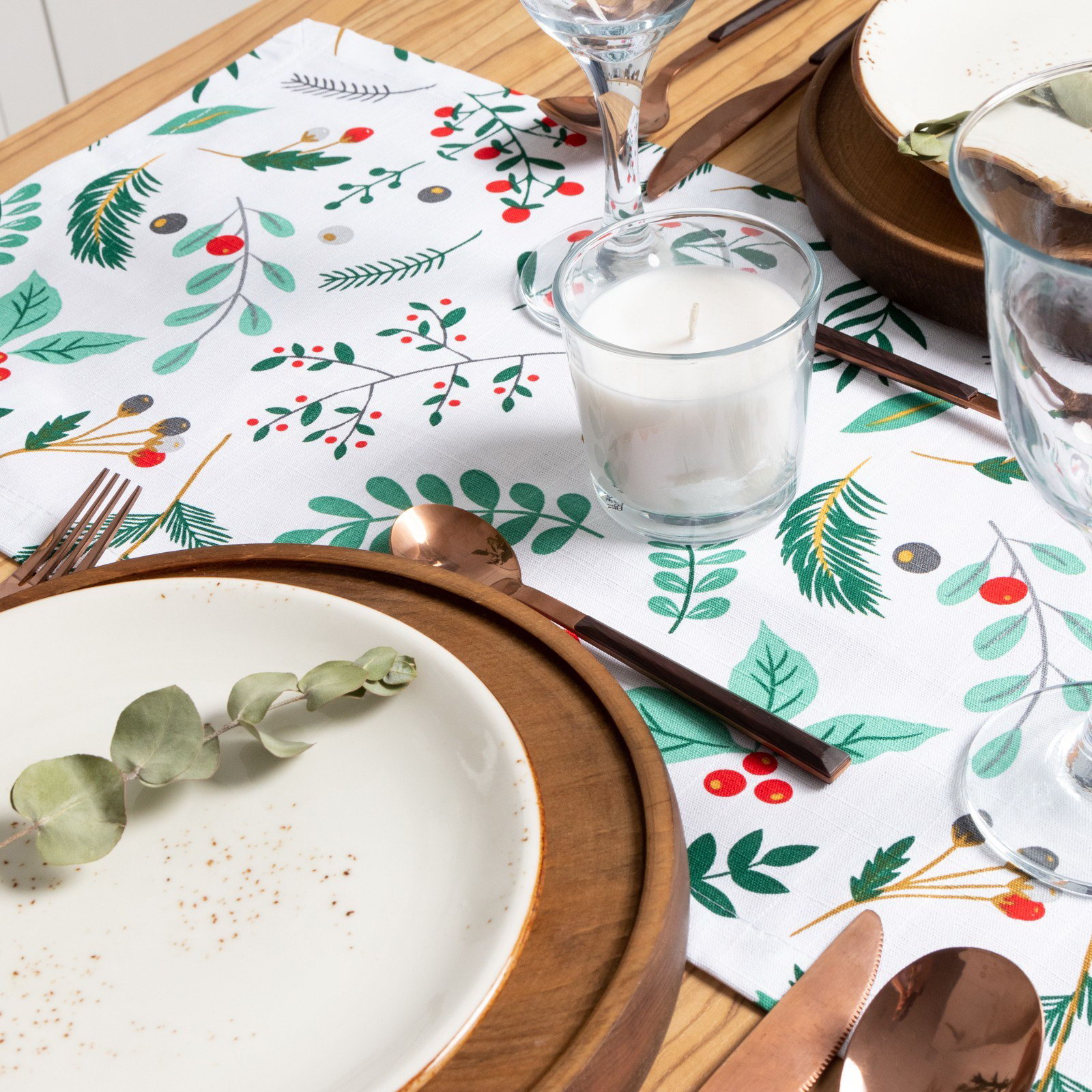 Дорожка на стол новогодняя Leaves 30х70см, 100%хл, репс 210 г/м2, Этель, Россия