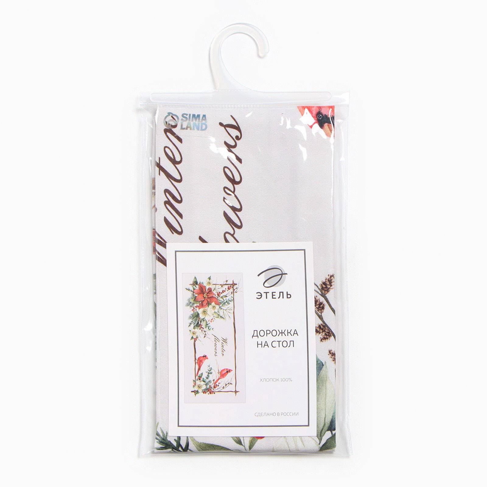 Дорожка на стол "Пуансетия" 30x70 см, 100% хлопок, саржа 190 г/?2, белая, Этель, Россия