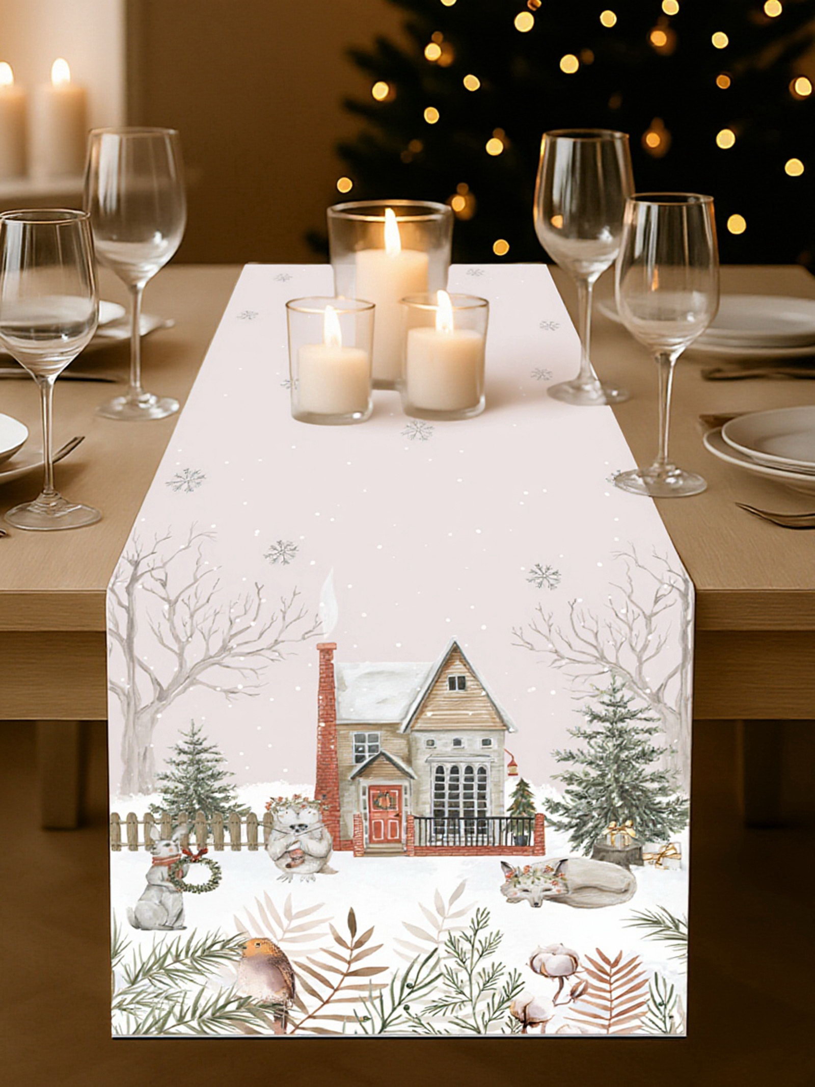 Дорожка новогодняя на стол "Звери в городе" 40x147 +- 5 см, 100% хл, саржа 190 г/?2, Этель, Россия