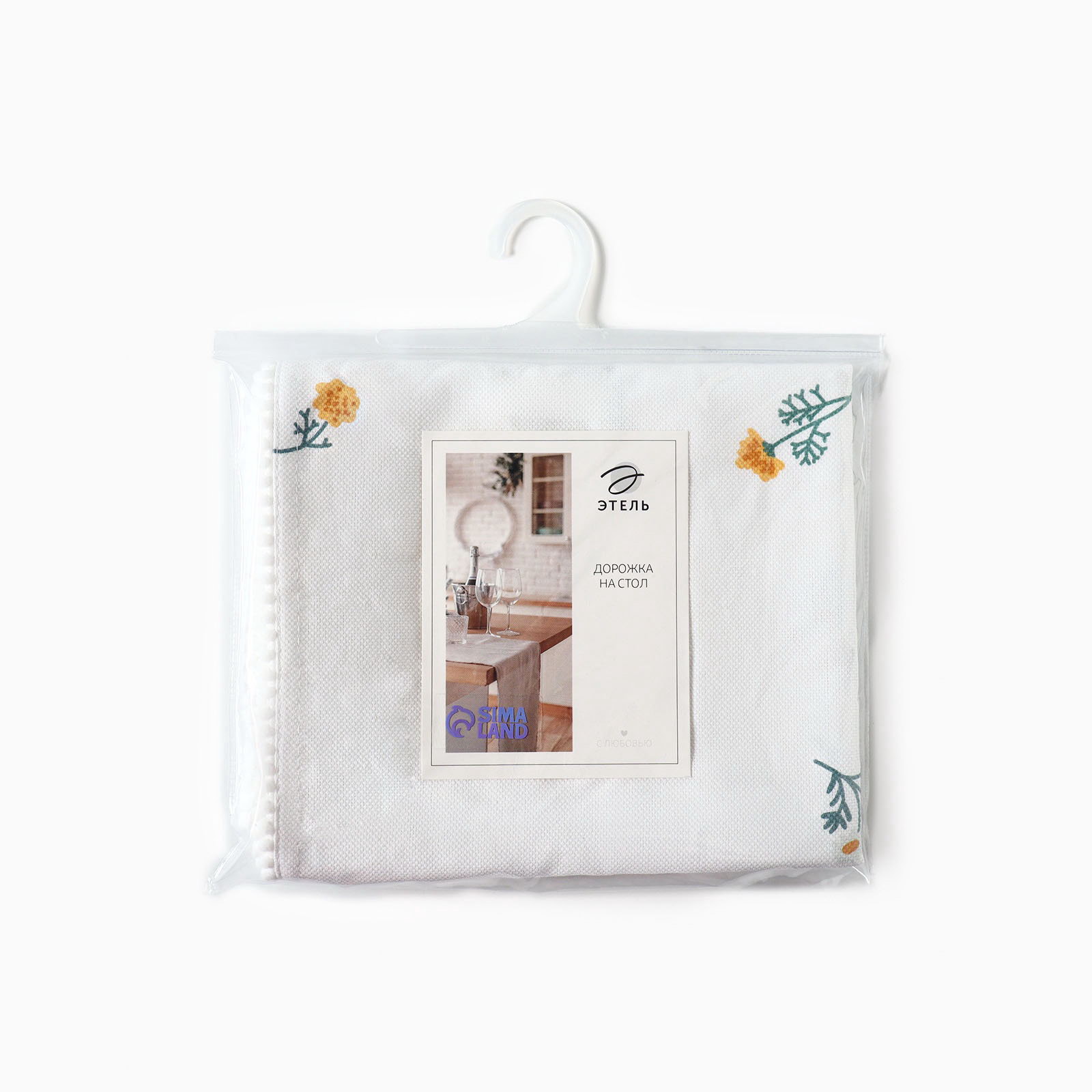 Дорожка на стол "Полевые цветочки" 40x146см, рогожка 176 г/?2, 100% хлопок, белая, Этель, Россия