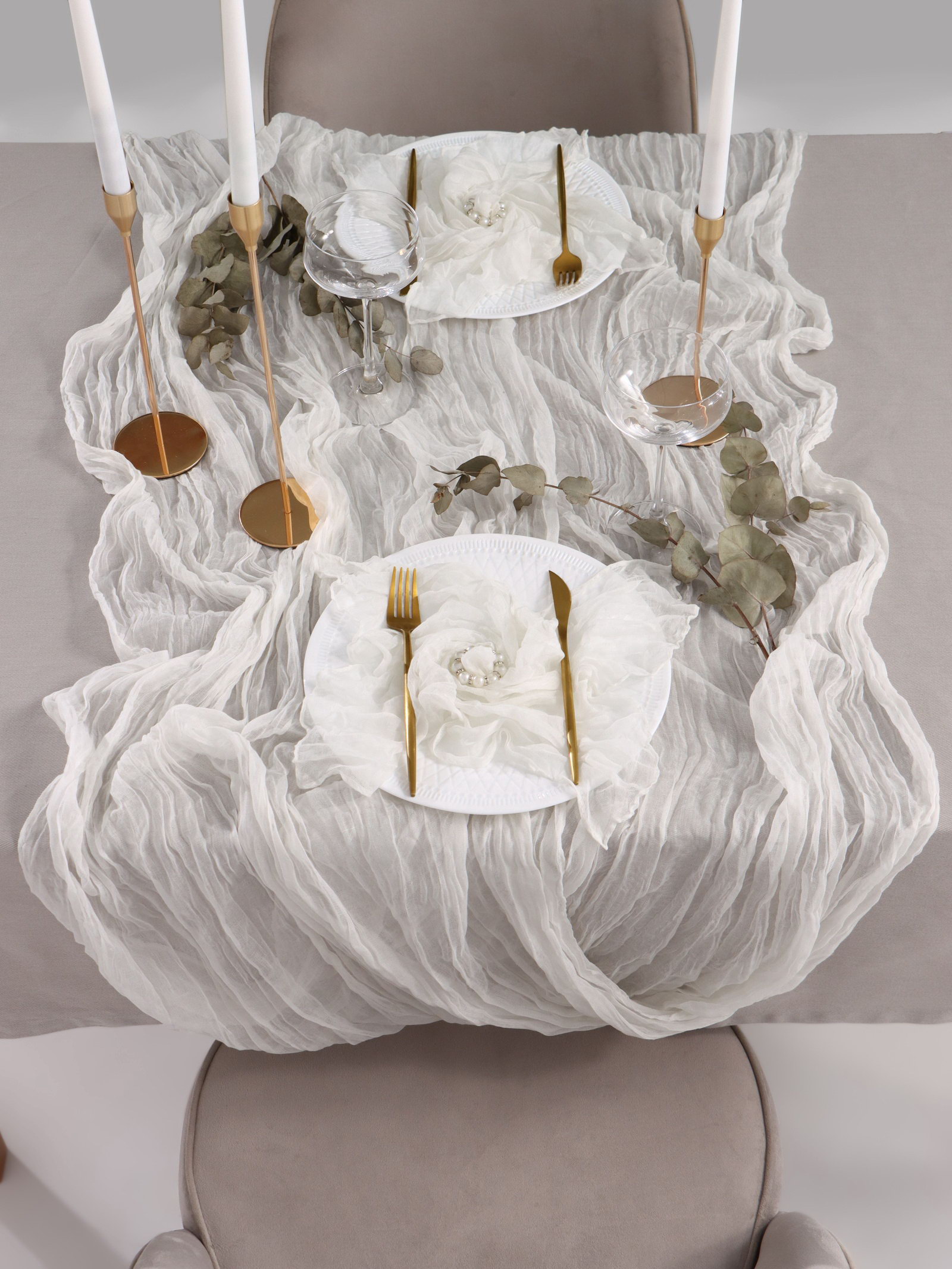 Дорожка на стол белая, 90x300 см,100% п/э, 90x300 см., Этель, Китай