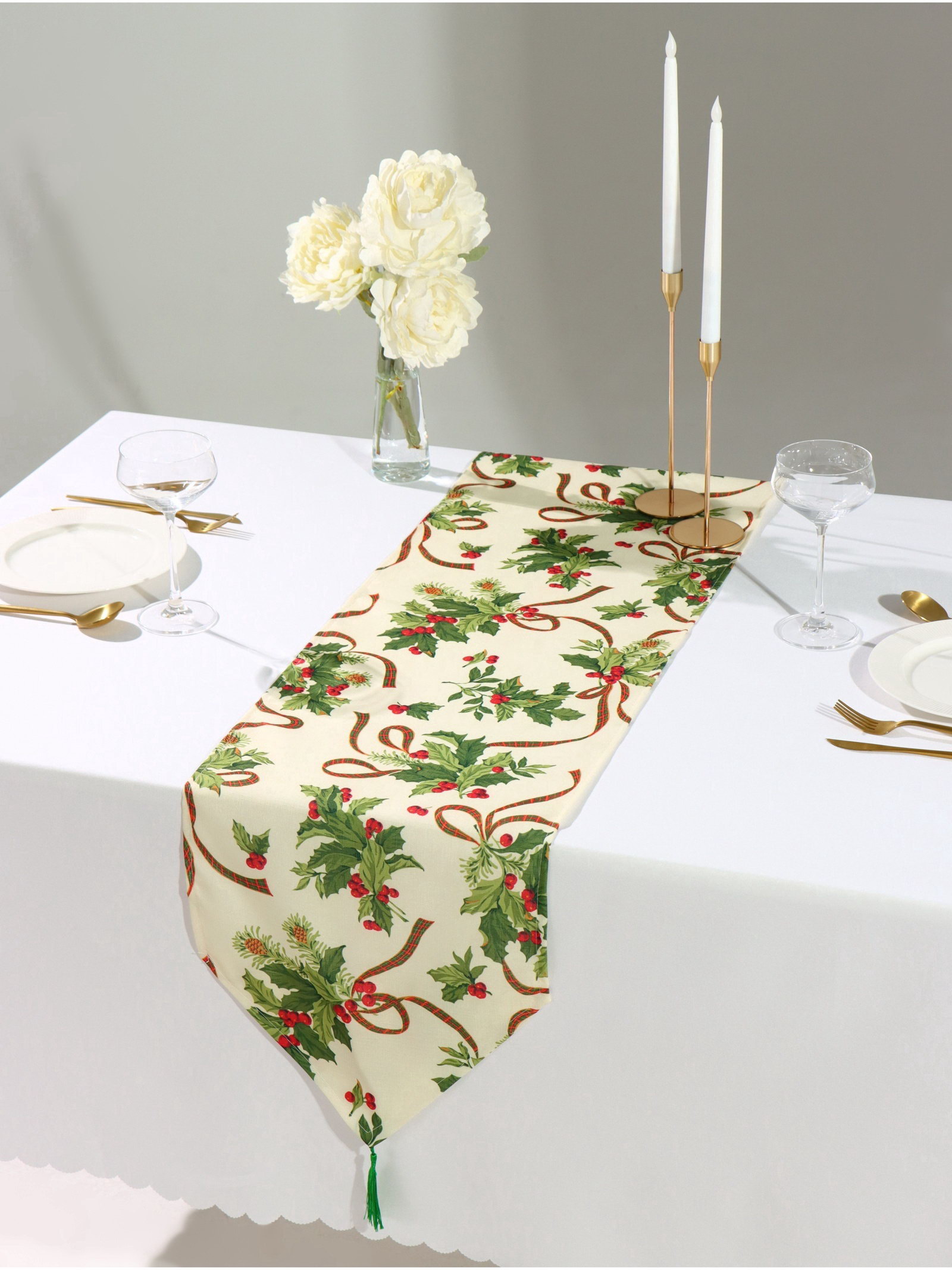 Практическое применение Дорожку используют для сервировки новогоднего стола, создания тематического декора. Модель выбирают для домашнего использования и в качестве новогоднего подарка. | ||