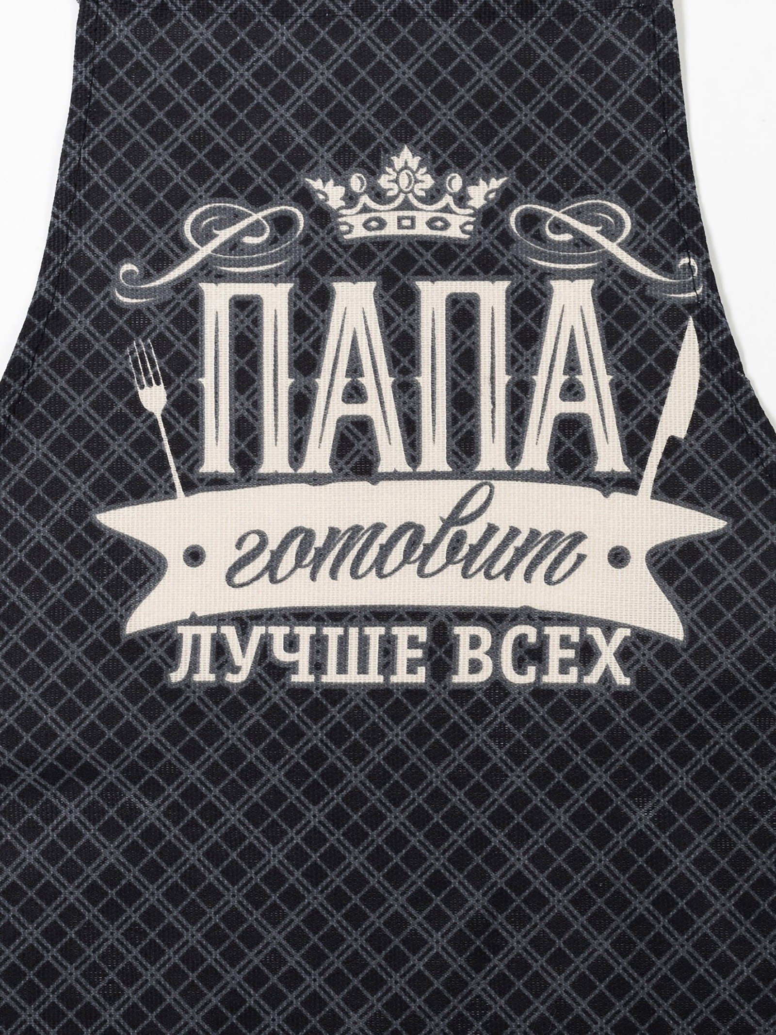 Фартук "Доляна. Папа готовит лучше всех", черный, 60x70 см, 100% хлопок, рогожка 160 г/?2, 60x70 см., Доляна, Россия