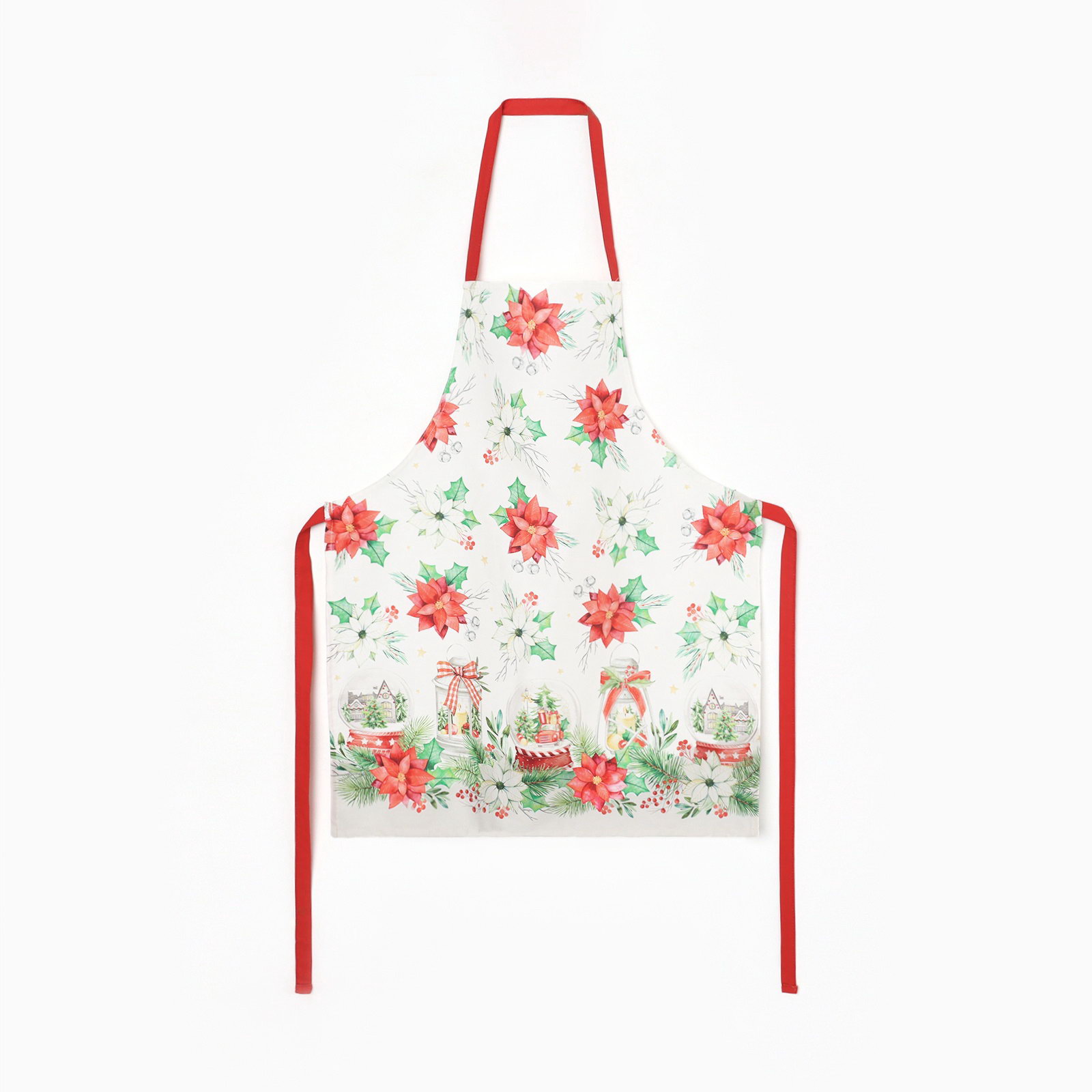 Фартук новогодний Christmas red flowers 60x70 см, 100% хл, саржа 190 г/?2, 60x70 см., Этель, Россия