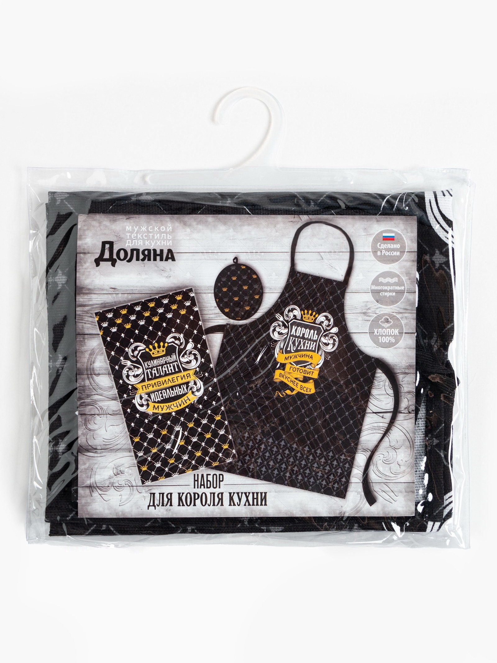 Кухонный набор "Король кухни": фартук 60x70 см, прихватка 20x20 см, полотенце 35x60 см, Доляна, Россия