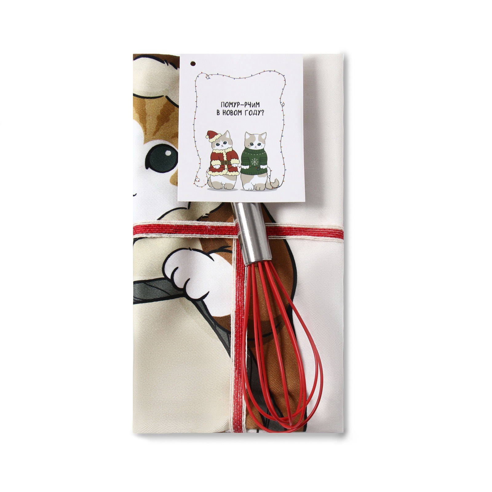 Набор подарочный новогодний "Этель. Помурчим в новом году": полотенце 40x70 см, венчик кухонный, Этель, Россия