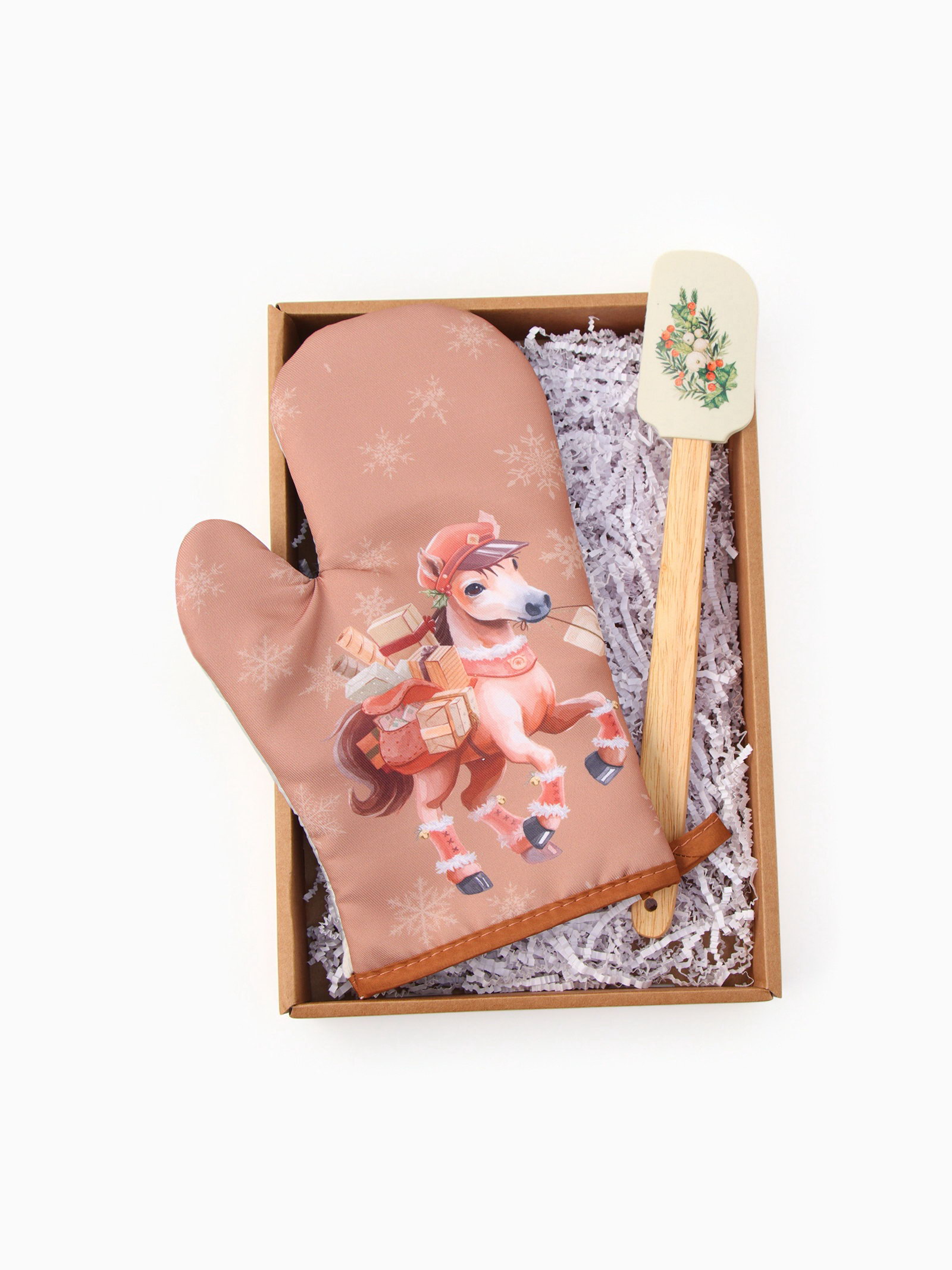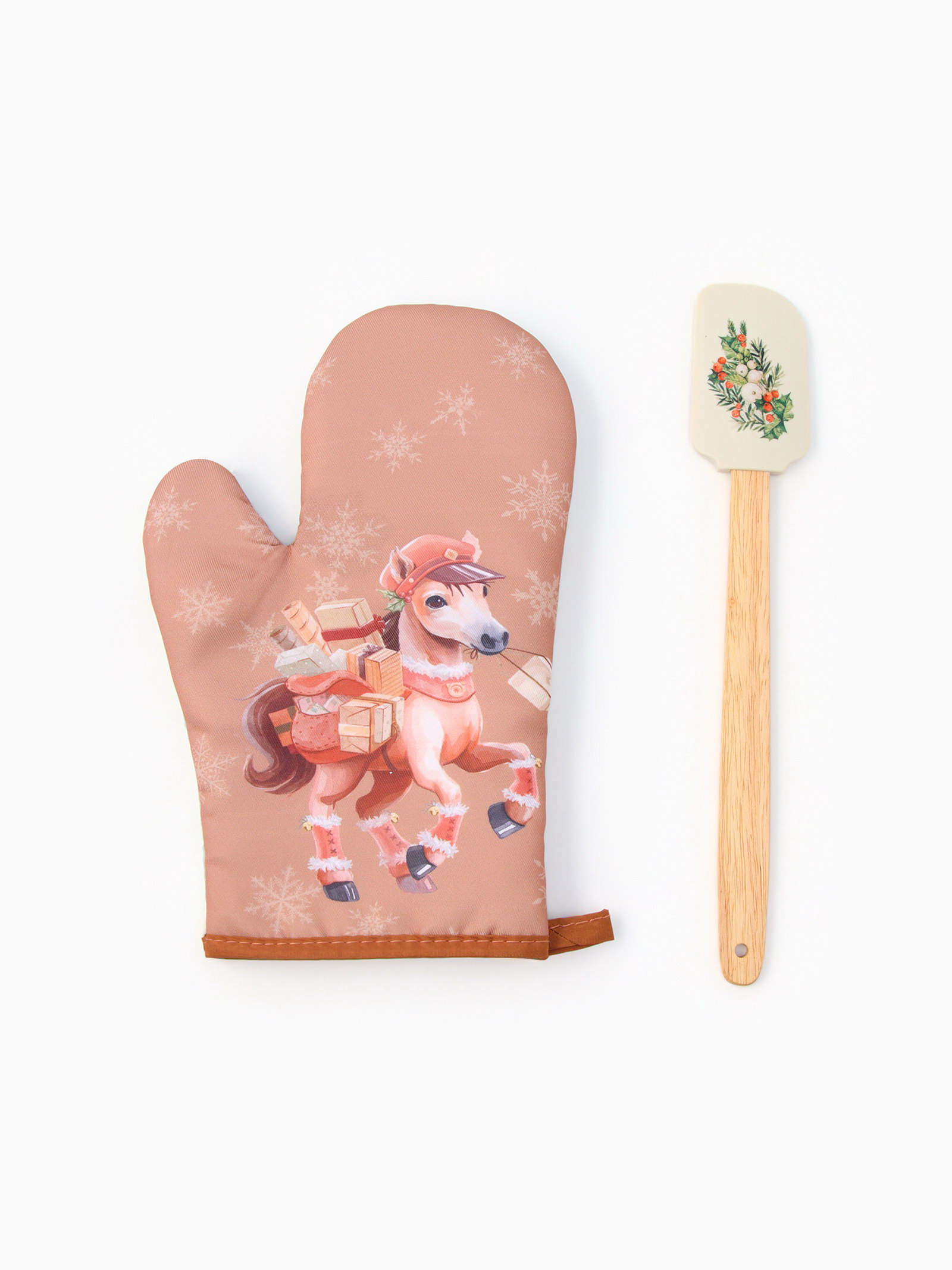 Набор подарочный "Почтовая лошадка" варежка-прихватка, лопатка силикон, 29.5x20x5 см., Доляна, Россия