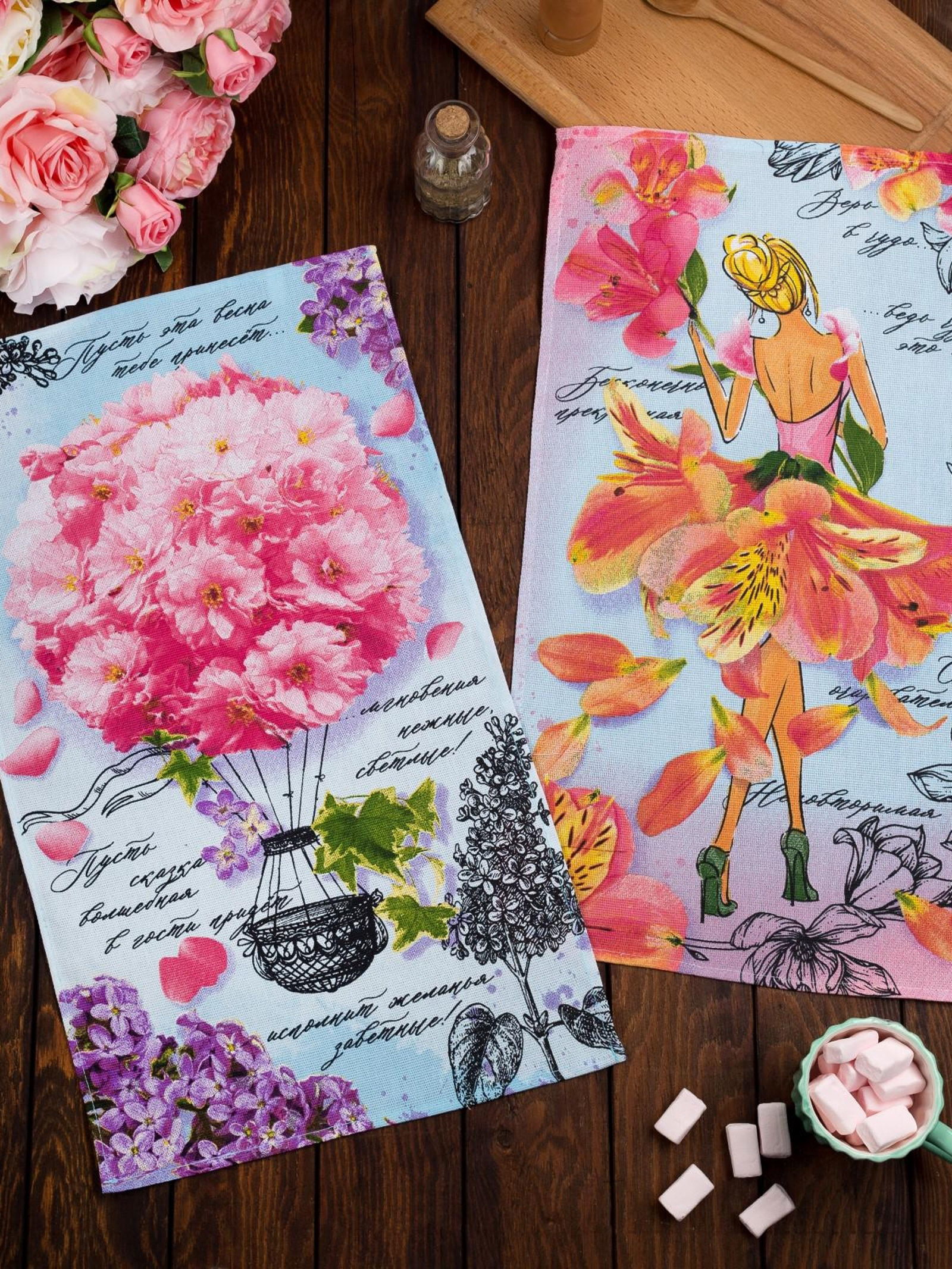 Полотенце кухонное "Волшебная весна" 34х60 см, рогожка, 100% хлопок, 160 гр/м, 34x1x60 см., Доляна, Россия