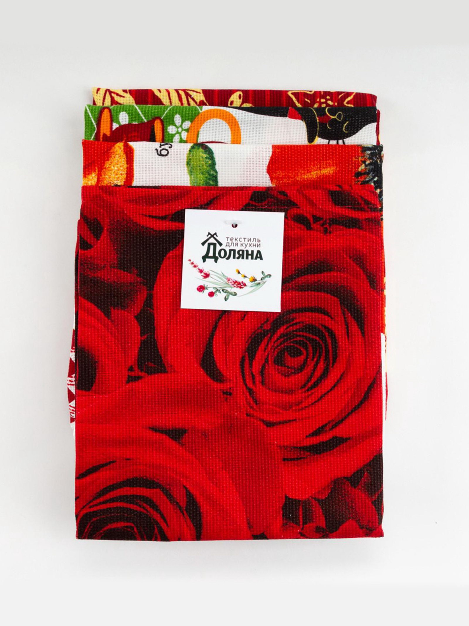 Набор кухонных полотенец "Тебе", 35x60 см - 4 шт., 100% хлопок, 35x60 см., Доляна, Россия