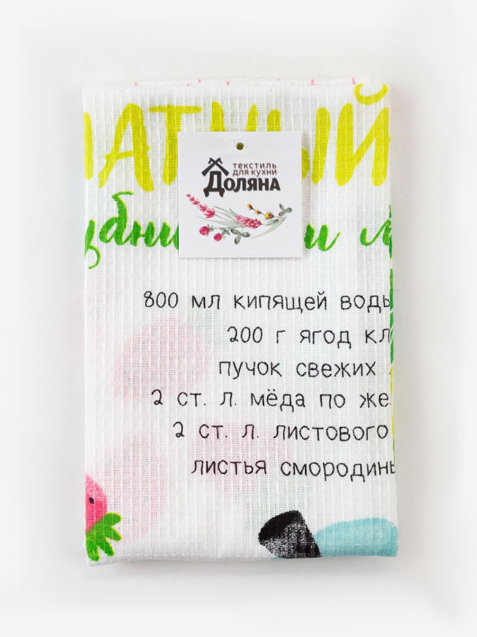 Полотенце "Ароматный чай" 35х60 см, 100% хлопок, вафля 160 г/м2, Доляна, Россия