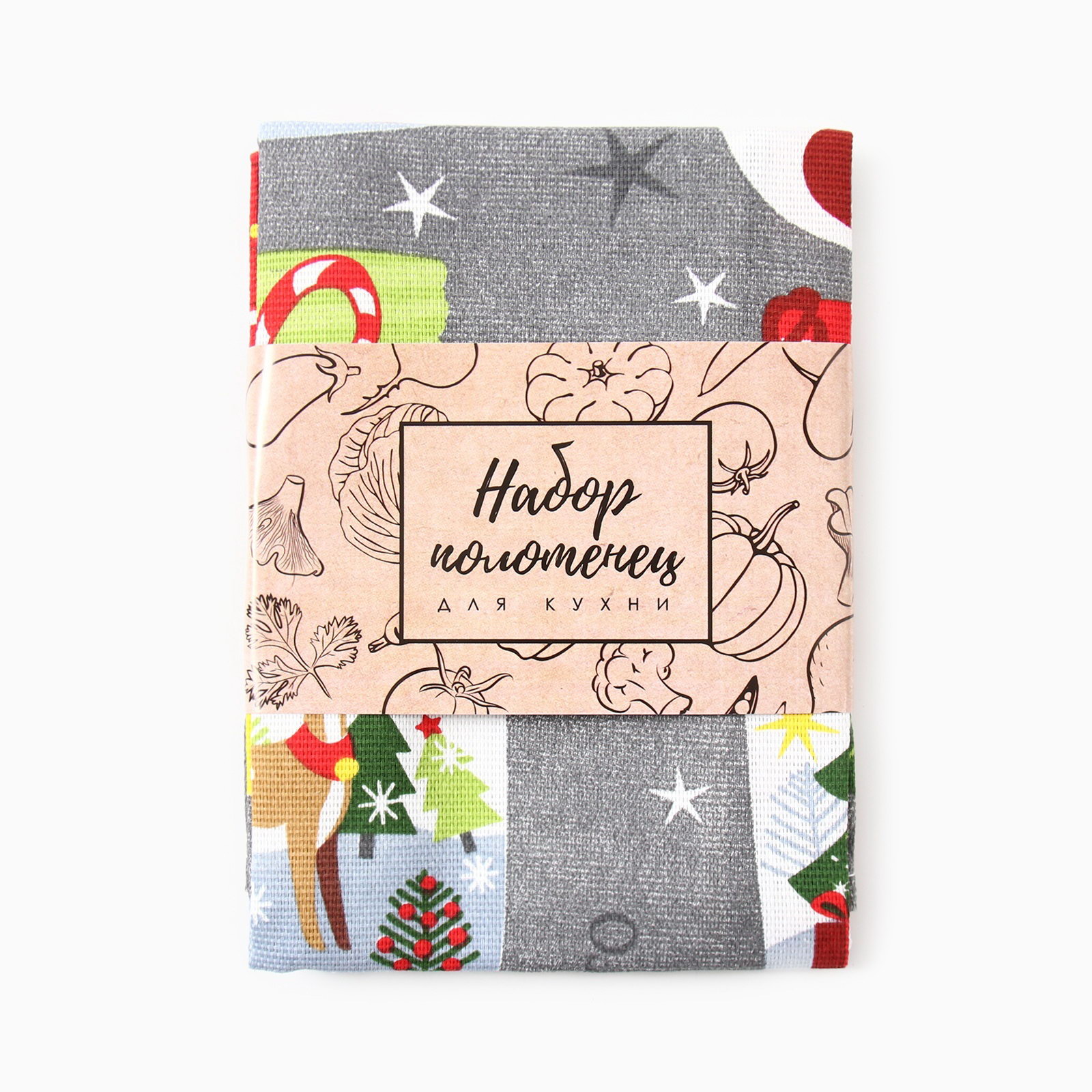 Набор новогодних кухонных полотенец "Волшебного года" 35х60см-2 штуки, 100% хлопок, Доляна, Россия
