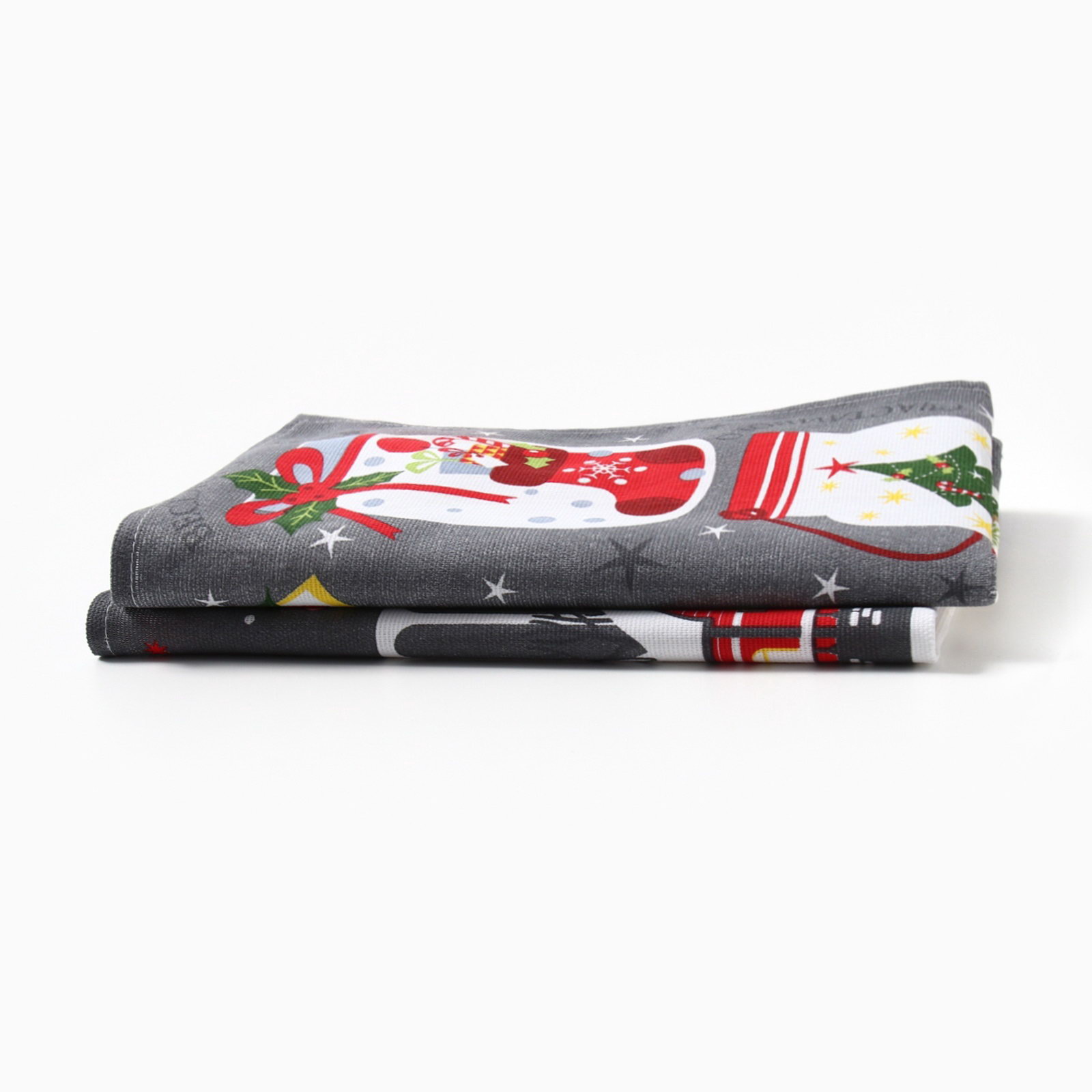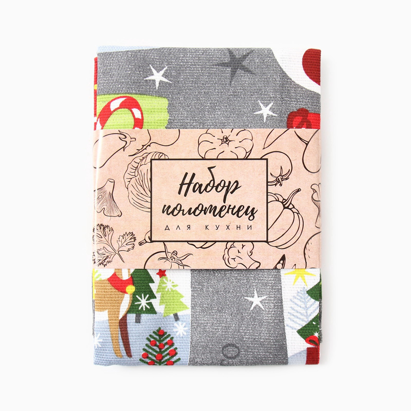 Набор новогодних кухонных полотенец "Волшебного года" 35x60 см-2 штуки, 100% хлопок, Доляна, Россия