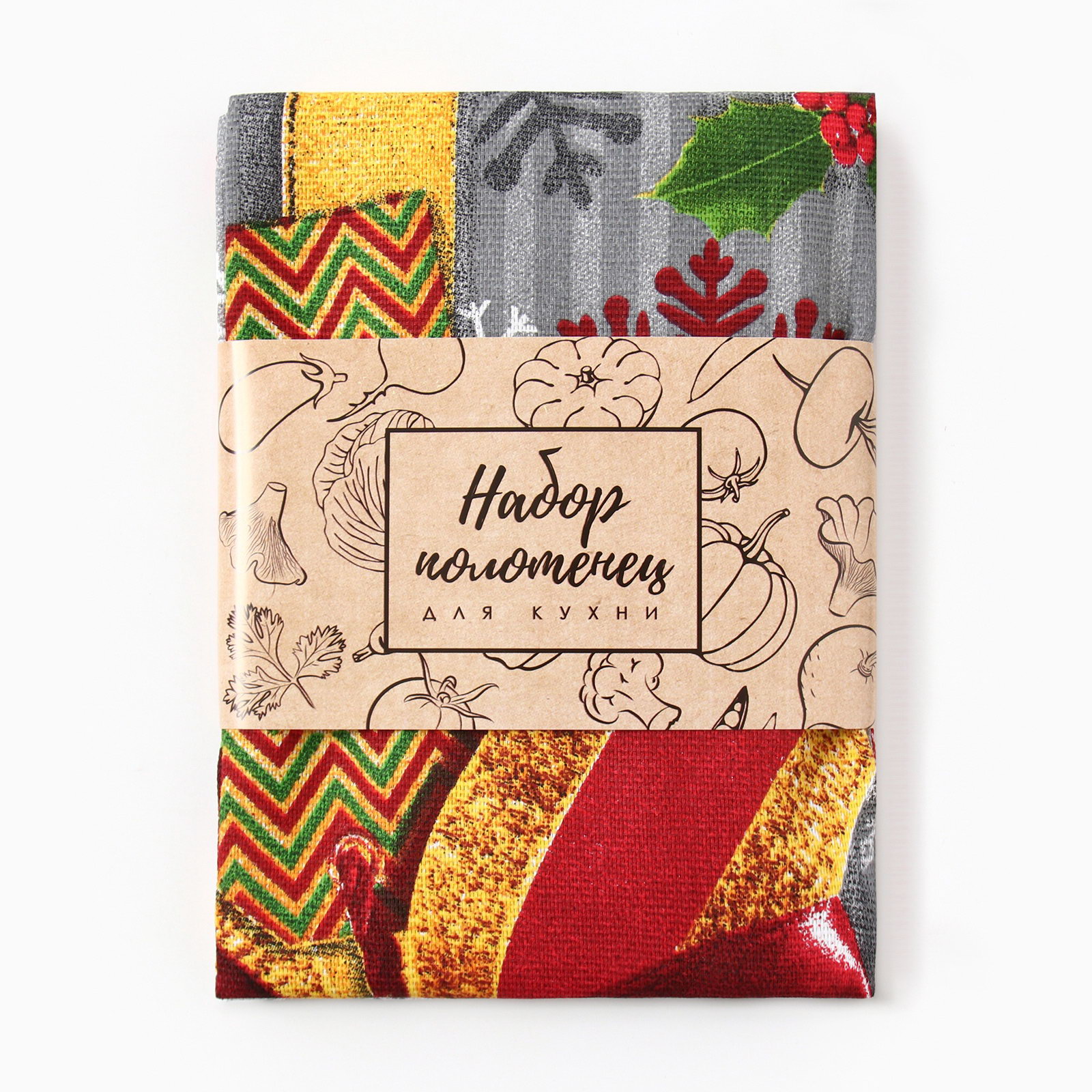 Набор кухонных полотенец "Новогодние игрушки " 35x60 см-2 шт., 100% хл, Доляна, Россия