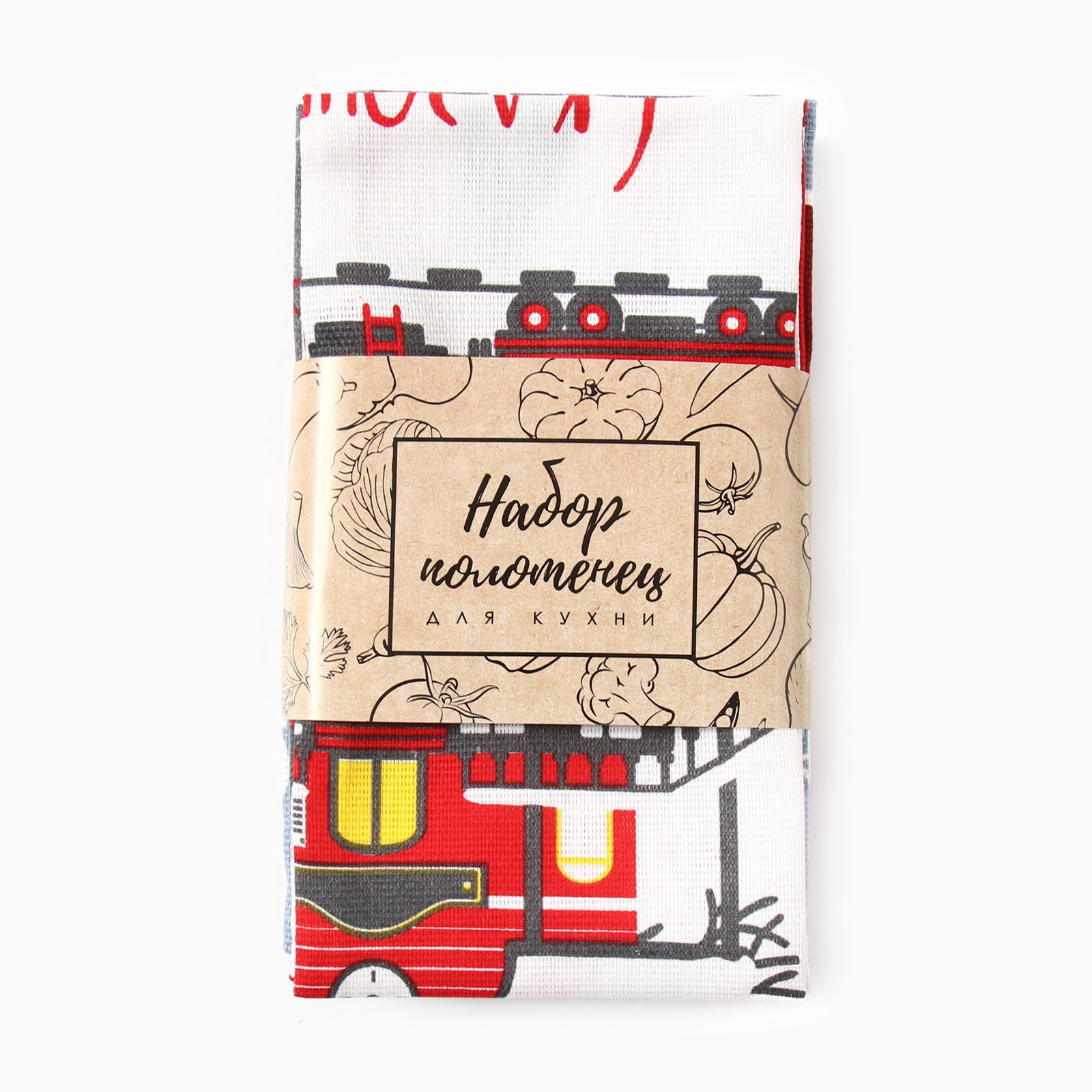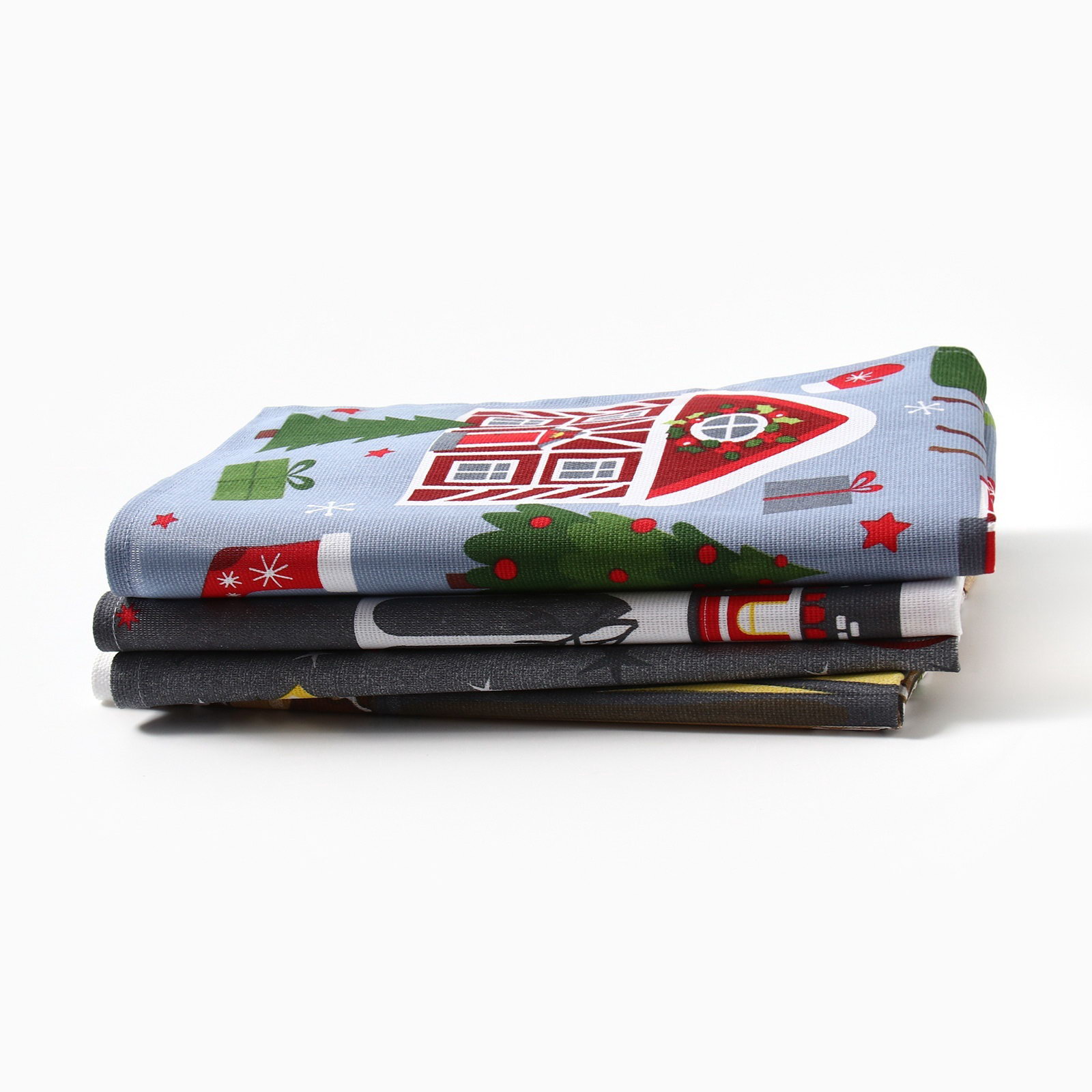 Набор новогодних кухонных полотенец "Волшебство" 35x60 см-4 штуки, 100% хлопок, Доляна, Россия