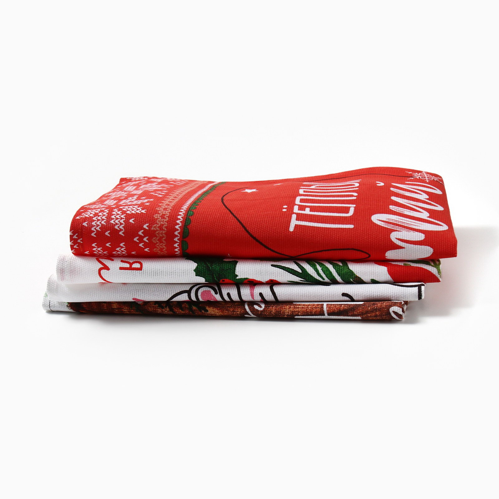 Набор новогодних кухонных полотенец "Новогоднее настроение" 35x60 см-4 штуки, 100% хлопок, Доляна, Россия