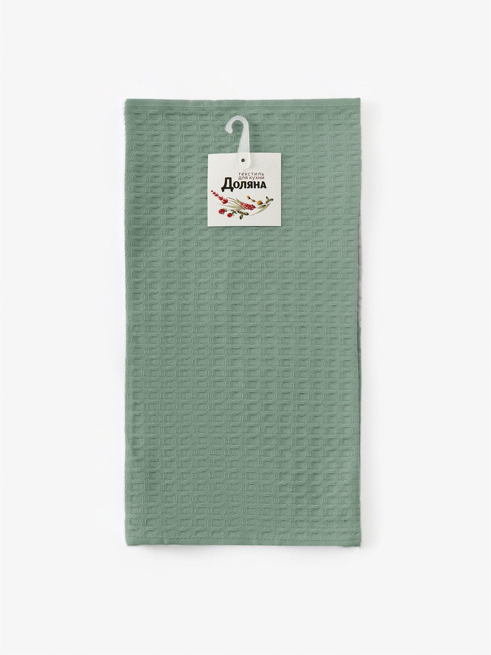 Кухонное полотенце хаки, 35x60 см, 100% хлопок, крупная вафля 220 г/?2, 35x60x1 см., Доляна, УЗБЕКИСТАН