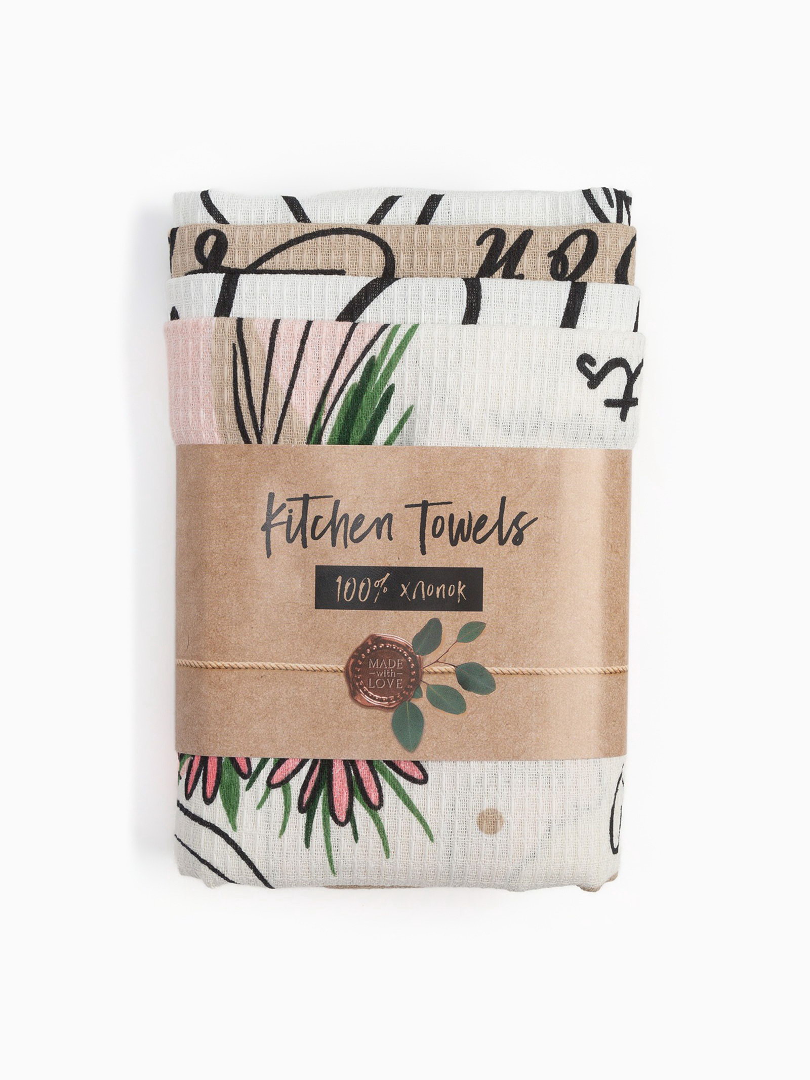 Набор кухонных полотенец Happiness, 35х60 см -4 шт, 100% хлопок, вафля 160 г/м2, Доляна, Россия