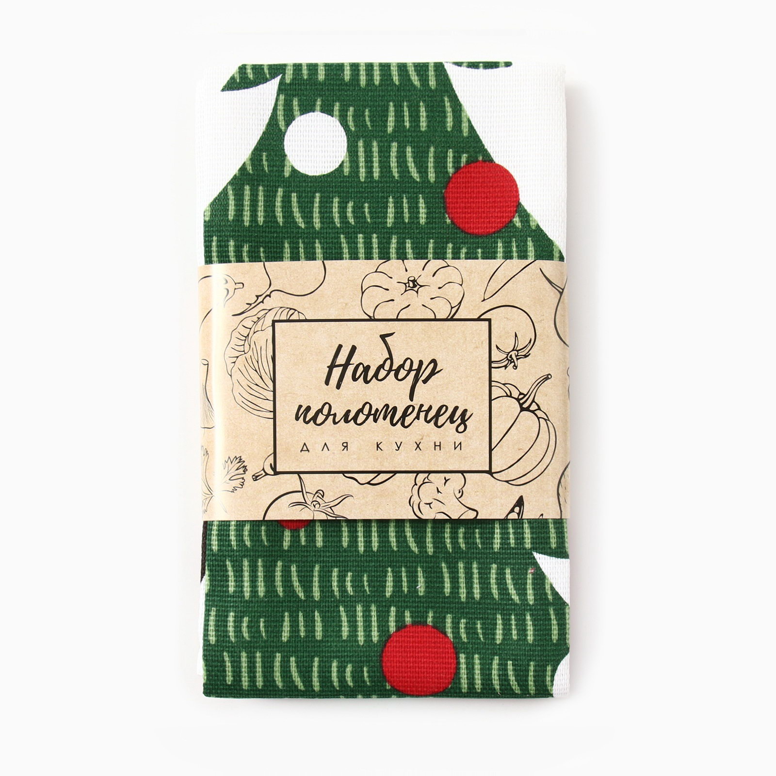 Набор новогодний кухонный новогодних полотенец "Тепло Нового года" 35х60 см-2 штуки, 100% хлопок, 160 г/м2, Доляна, Россия
