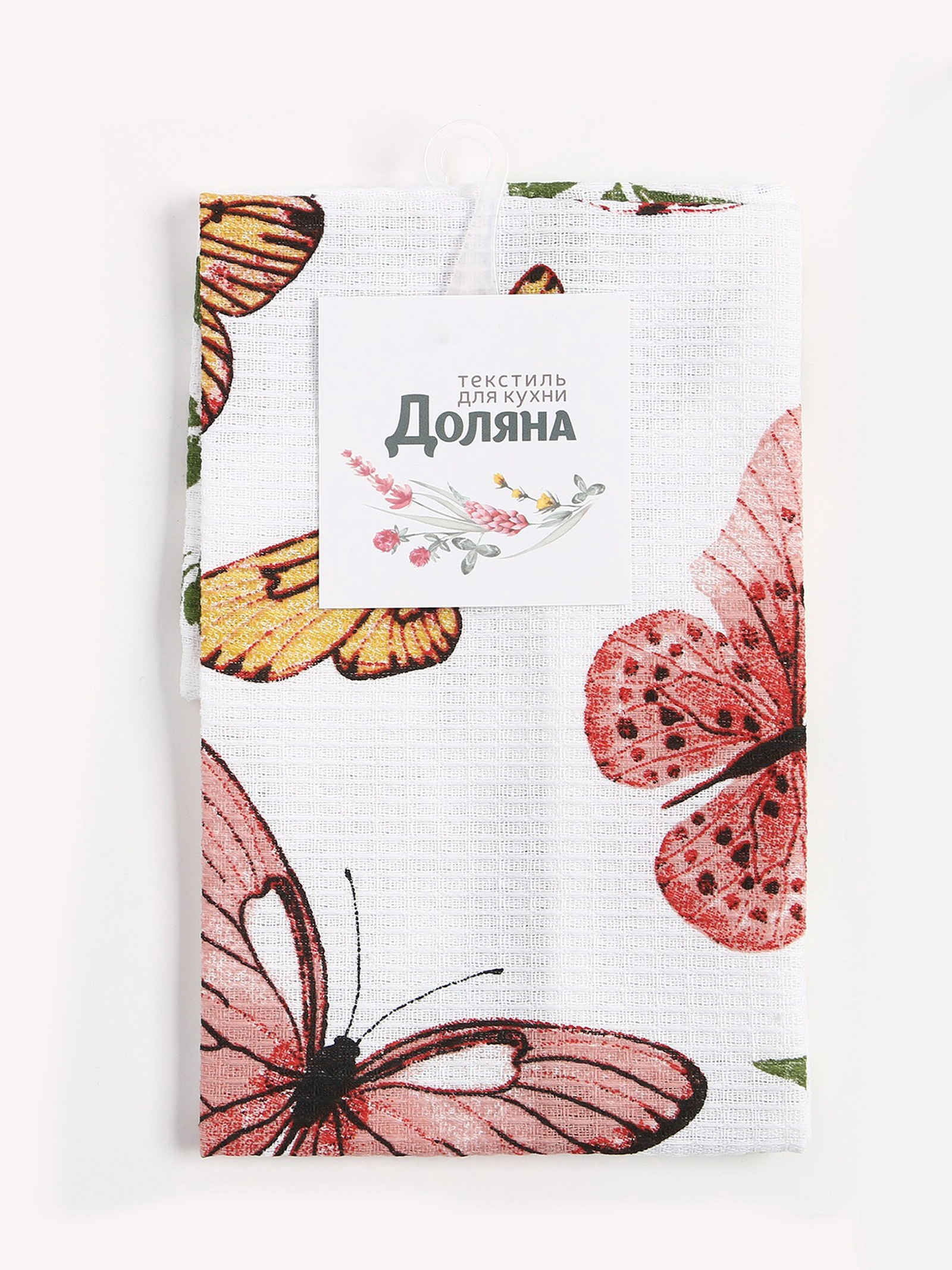 Полотенце "Бабочки" 28х46 см, 100% хлопок, вафля 160 г/м2, Доляна, Россия