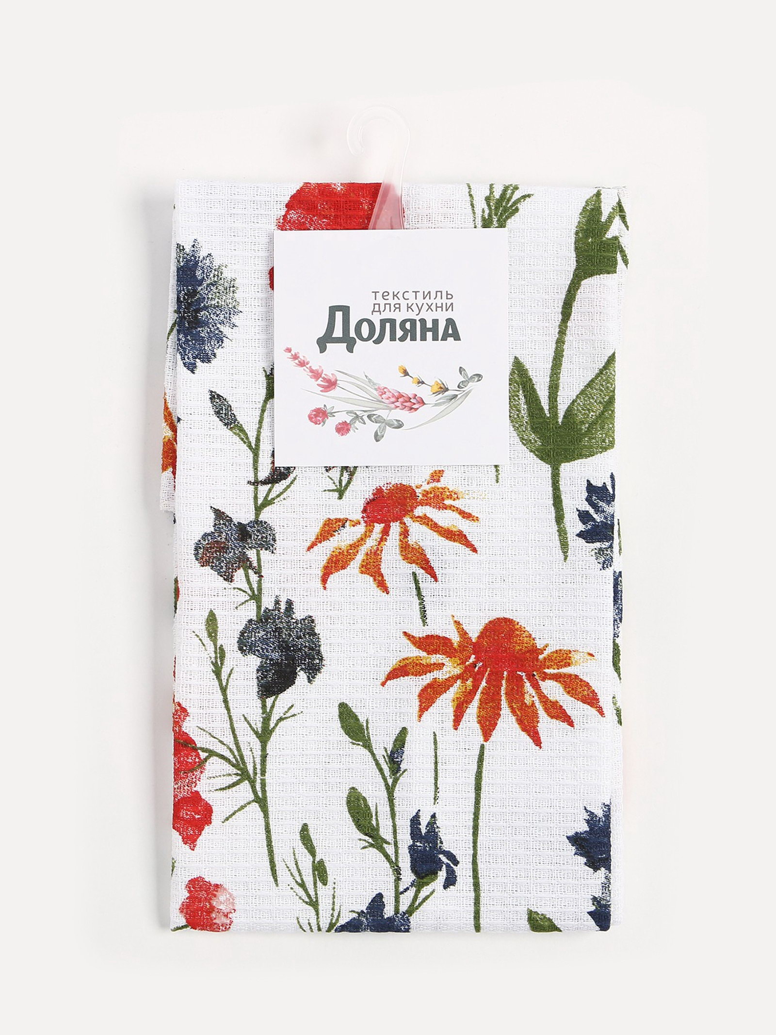 Кухонное полотенце "Доляна. Луговые цветы", 28x46 см, 100% хлопок, вафля 160 г/?2, Доляна, Россия
