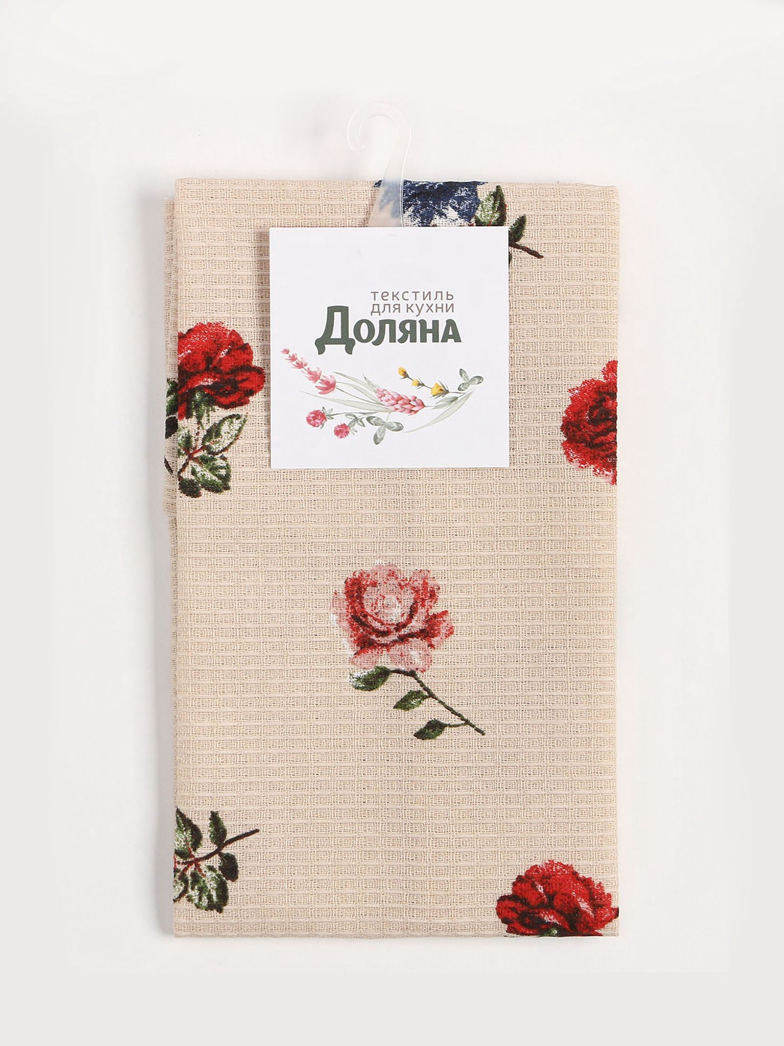 Кухонное полотенце "Доляна. Цветочки", 28x46 см, 100% хлопок, вафля 160 г/?2, Доляна, Россия