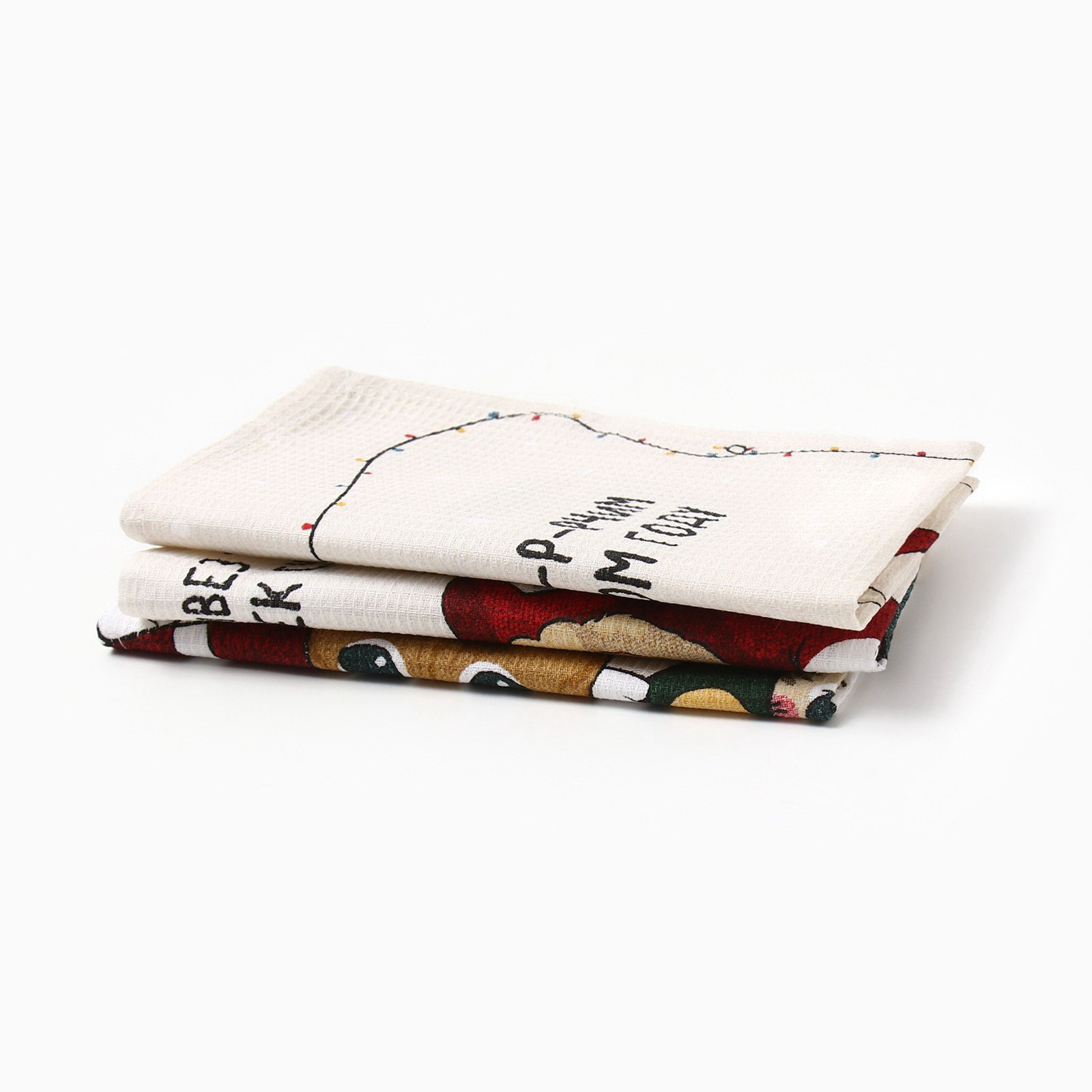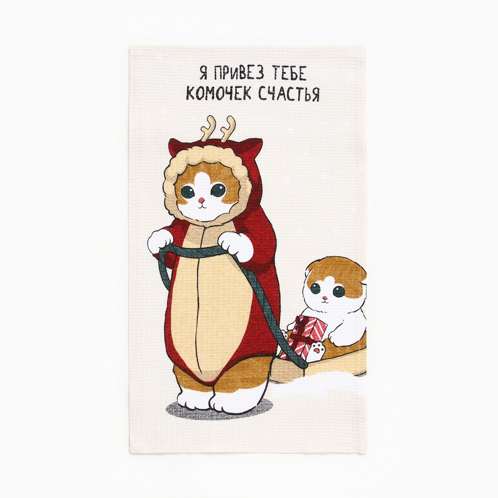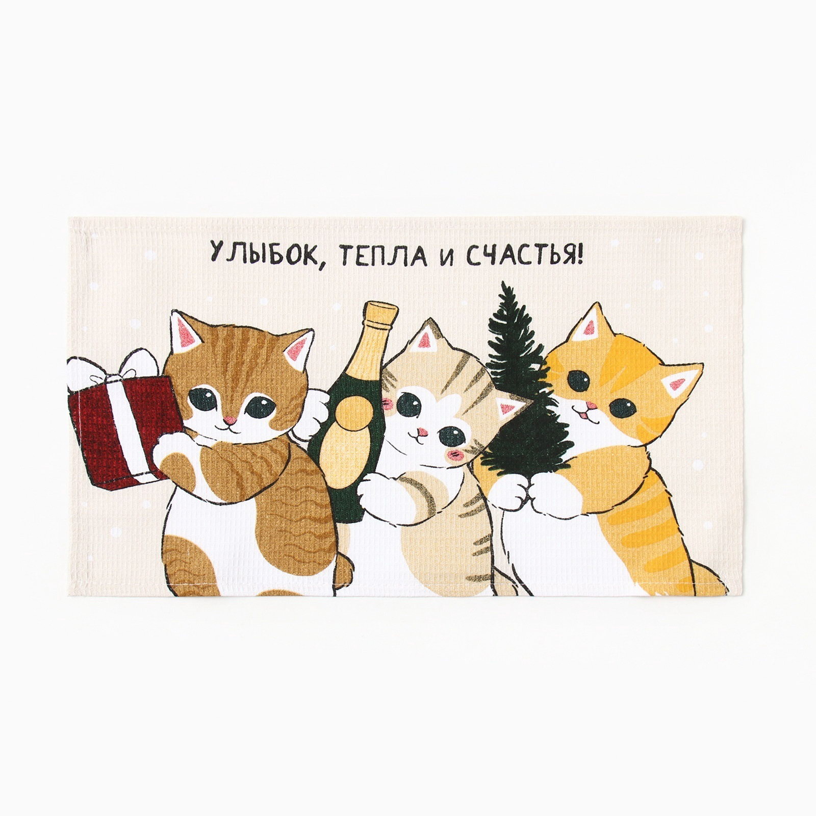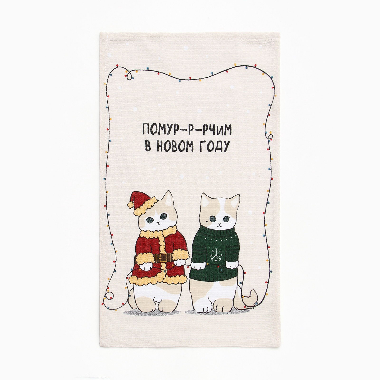Набор новогодних полотенец "Помурчим в новом году" 28x46 см - 3штуки, 100% хлопок, вафля 160 г/?2, Доляна, Россия