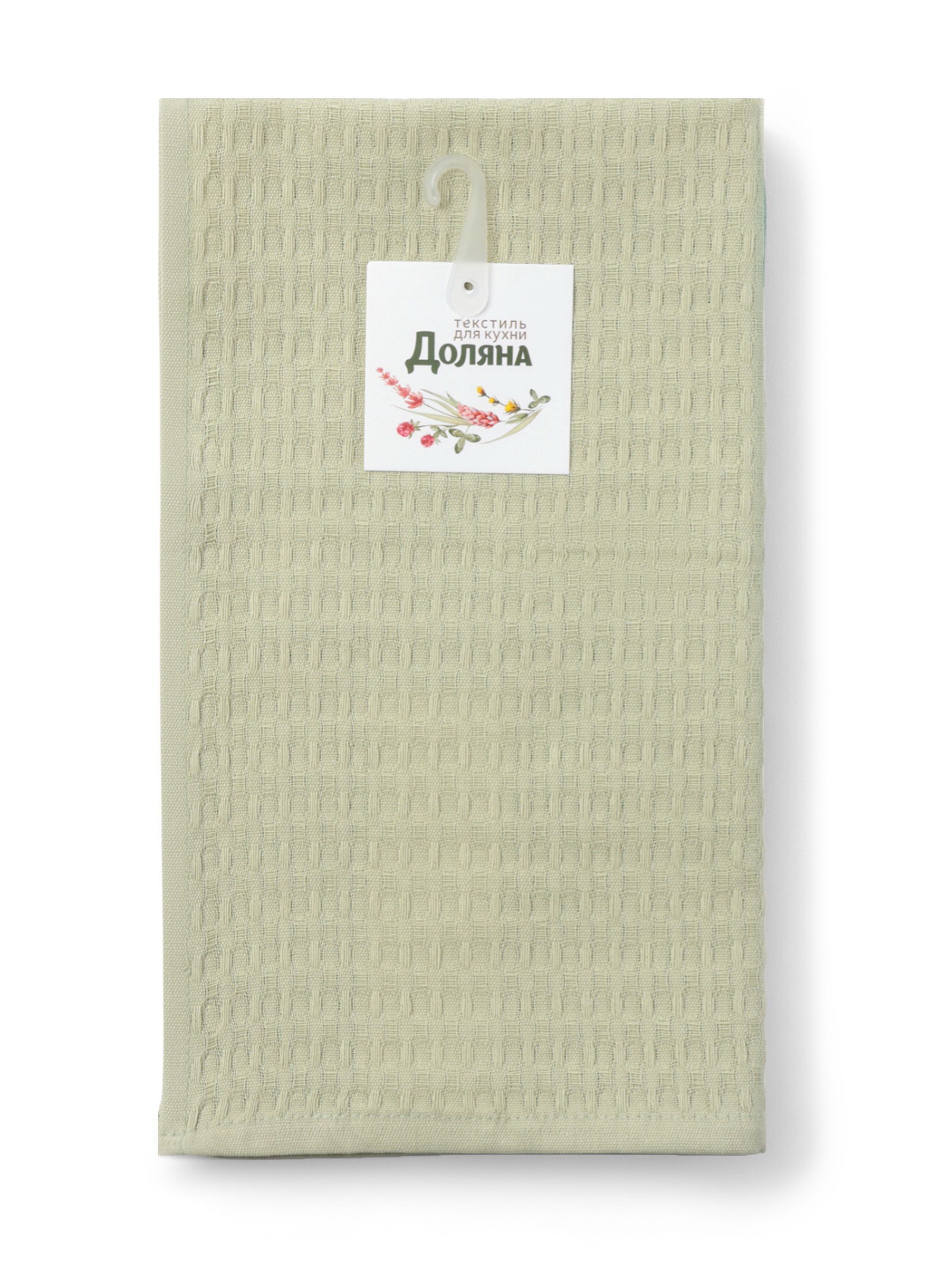 Набор кухонных полотенец: белое, оливковое, 35x60 см - 3 шт., хлопок 100%, Доляна, Россия