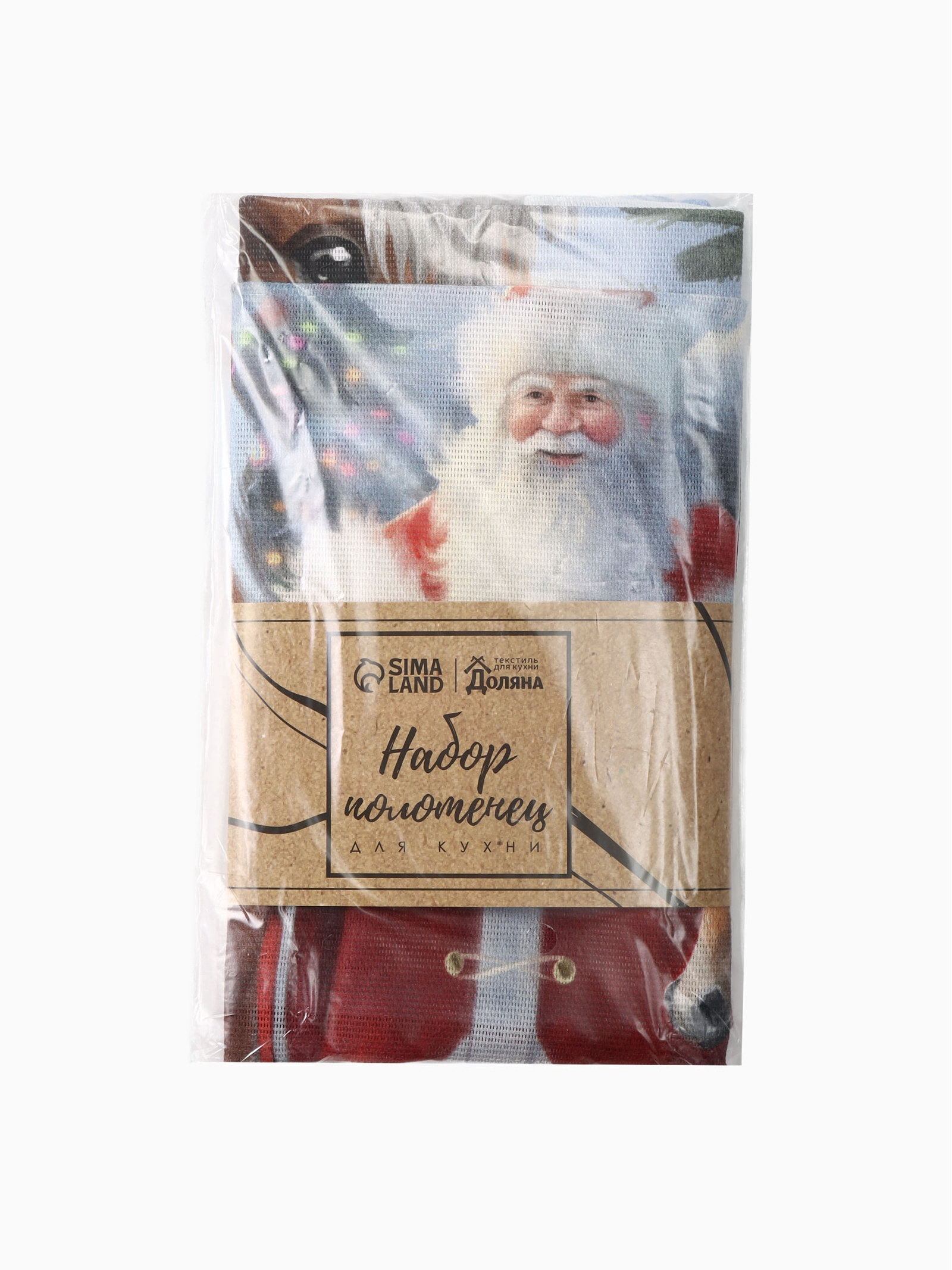 Набор кухонных полотенец "Доляна. Лошадь и Дед Мороз": 35x60 см-2 шт., 100% хлопок, рогожка, 160 г/?2, Доляна, Россия