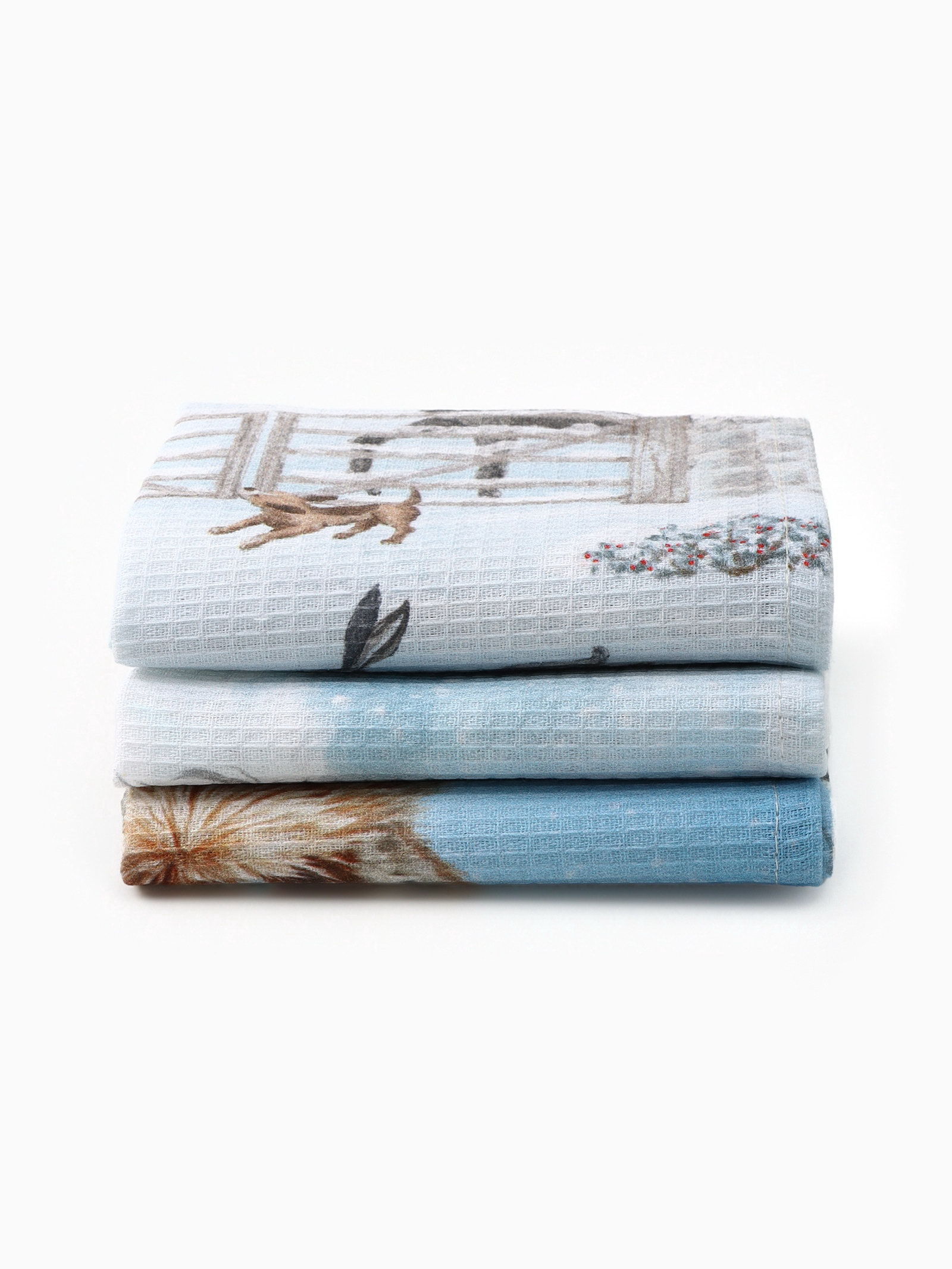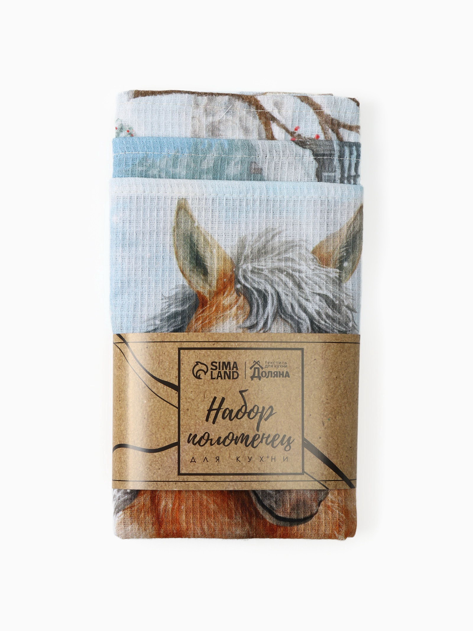 Набор кухонных полотенец "Доляна. Морозное утро", 28x44 см - 3 шт., вафля 160 г/?2, Доляна, Россия