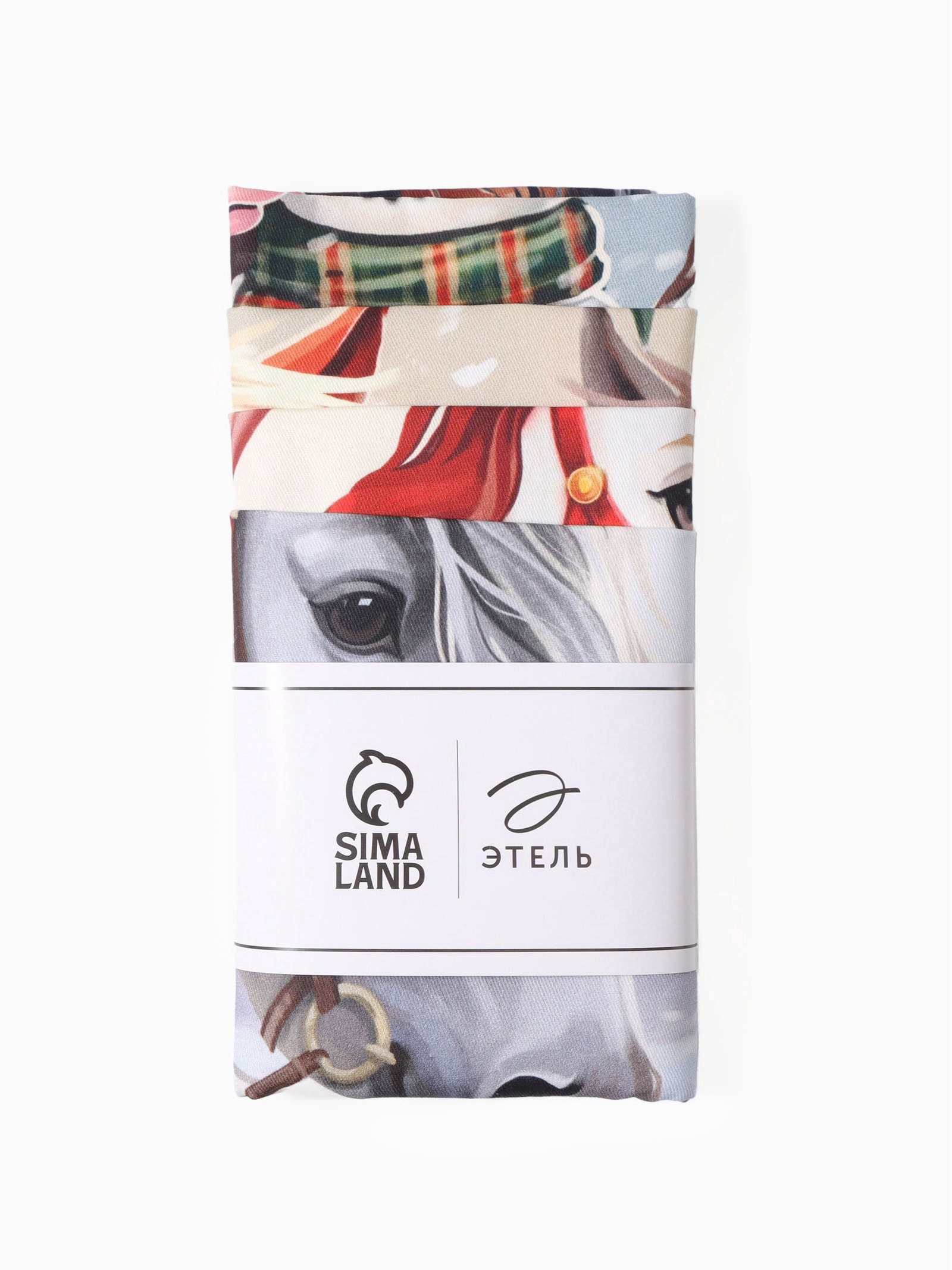 Набор кухонных полотенец "Этель. Лошадки", новогодний, 4 шт., 34x60 см, Этель, Россия