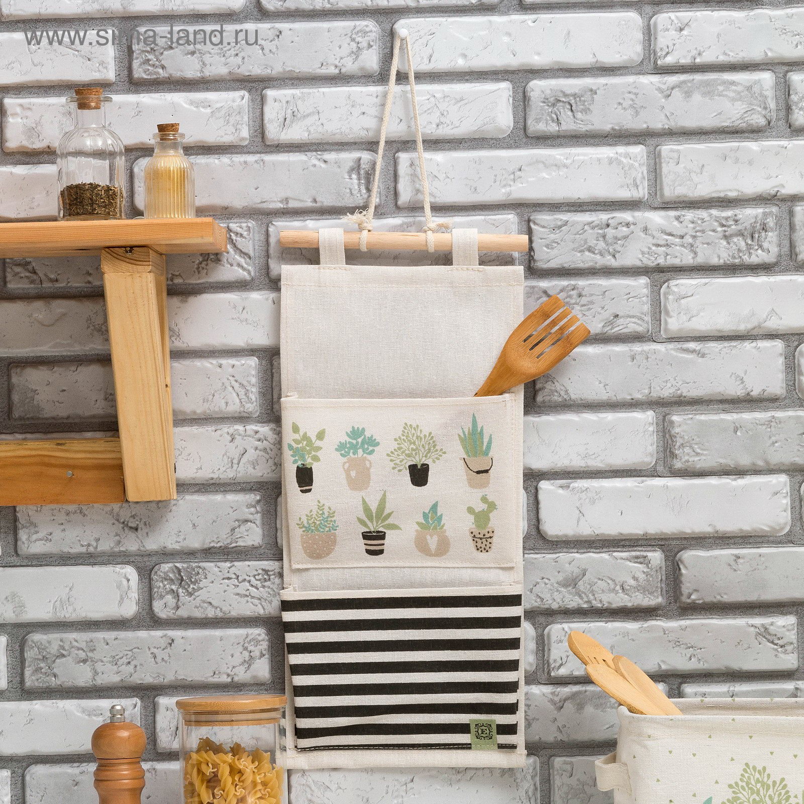 Кармашек текстильный "Цветочный магазин" 2 отделения, 41х20 см, 20x41 см., Этель, Китай