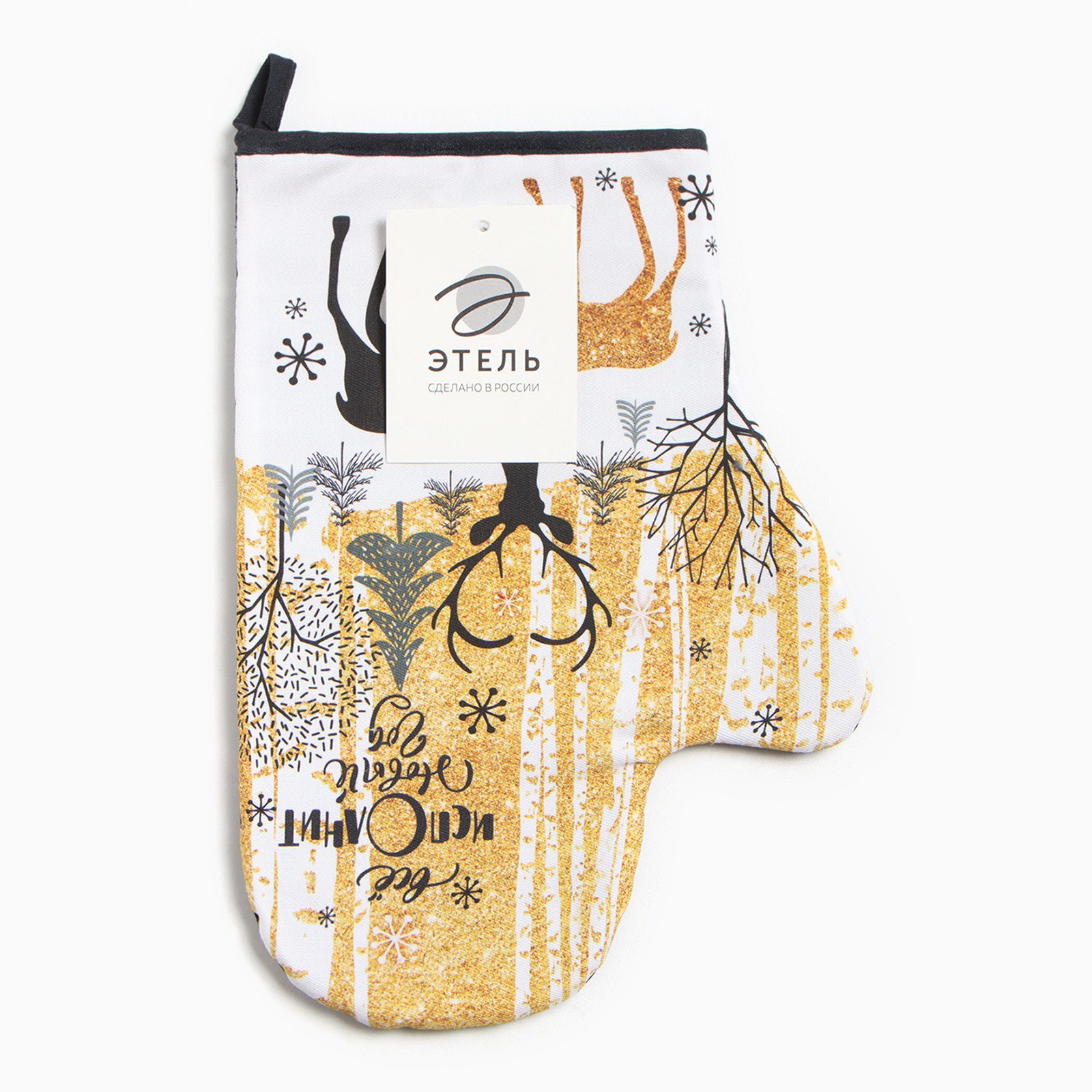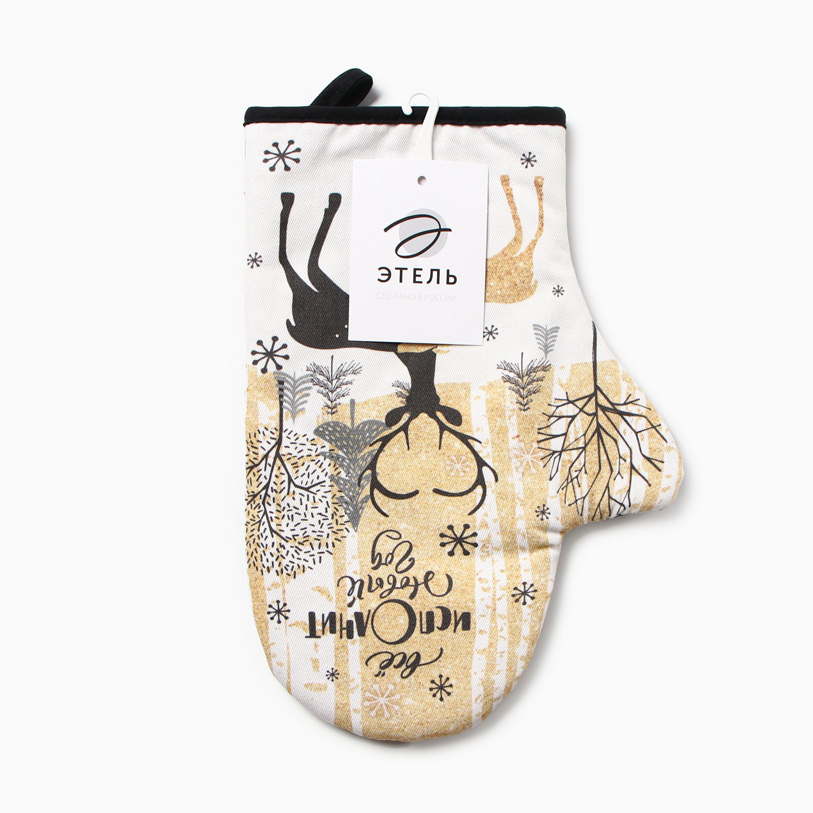 Варежка-прихватка "Новогодние олени" 20x28 см, саржа, 100% х/л, ватин 250 г/?2, 20x28 см., Этель, Россия