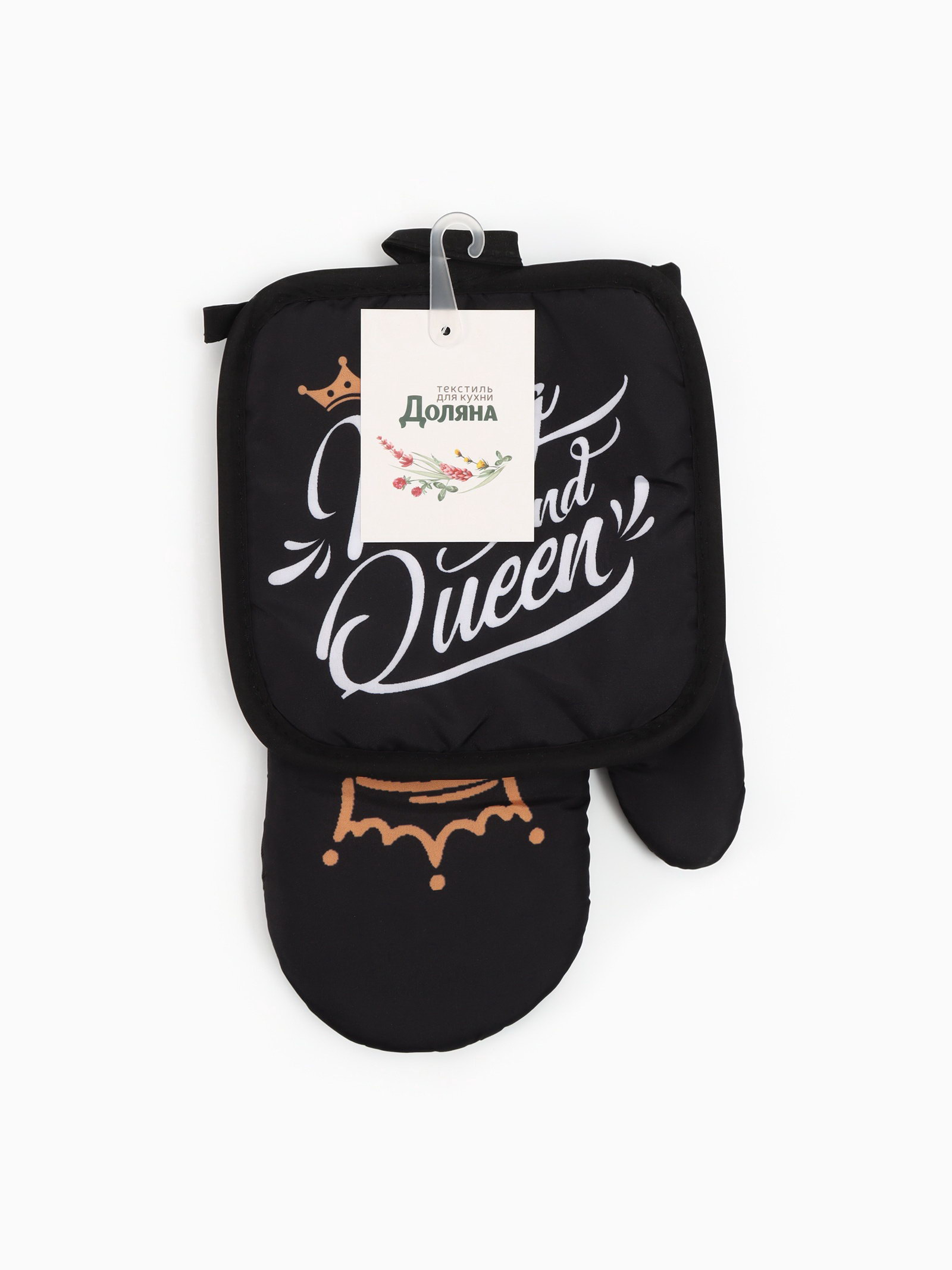 Кухонный набор 2 прихватки "King", прихватка 17х17 см, рукав. 26х16 см, Доляна, Китай
