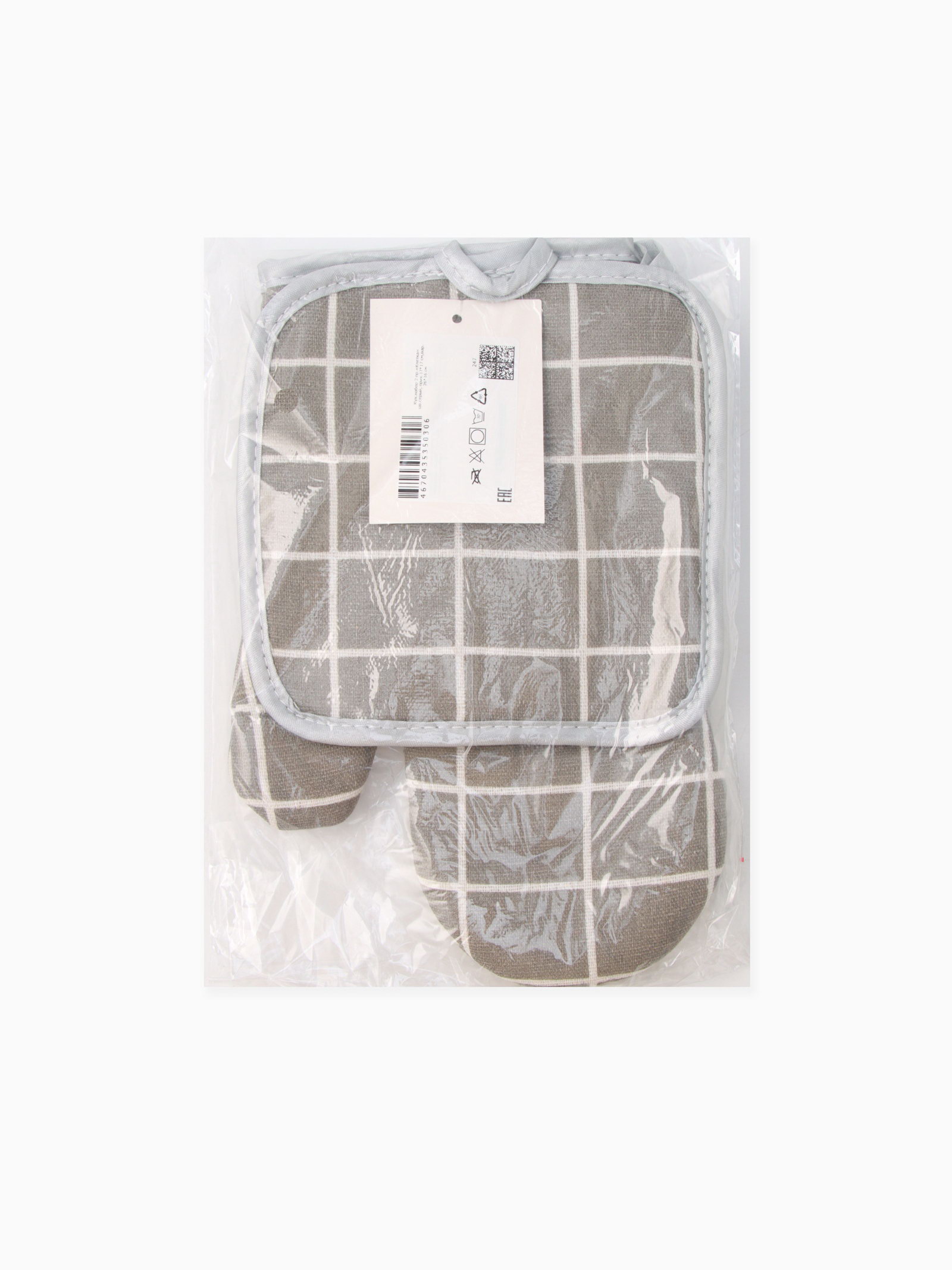 Размер, см: 17 x 17, 26 x 16 Цвет: Белый, Серый Форма: Квадратная, Фигурная Комплектация: Варежка, Прихватка Рекомендации по уходу: Не отбеливать, Стирка при 40 ℃ Сезон: Весна, Зима, Лето, Осень Размер упаковки: 19 x 2.5 x 28 см. Рисунок: Да Тематика: Клетка Вид упаковки: Пакет tnved: 6216000000 Плотность, г/?2: 200 В наборе, шт.: 2 Ткань: Полиэстер Состав ткани: Полиэстер Фактура материала: Гладкий Назначение: Взрослым Набор: Да Этот набор кухонных текстильных аксессуаров в серой клетке станет вашим надёжным помощником у плиты. Он сочетает практичность, безопасность и стильный дизайн, который легко впишется в интерьер. Что входит в набор