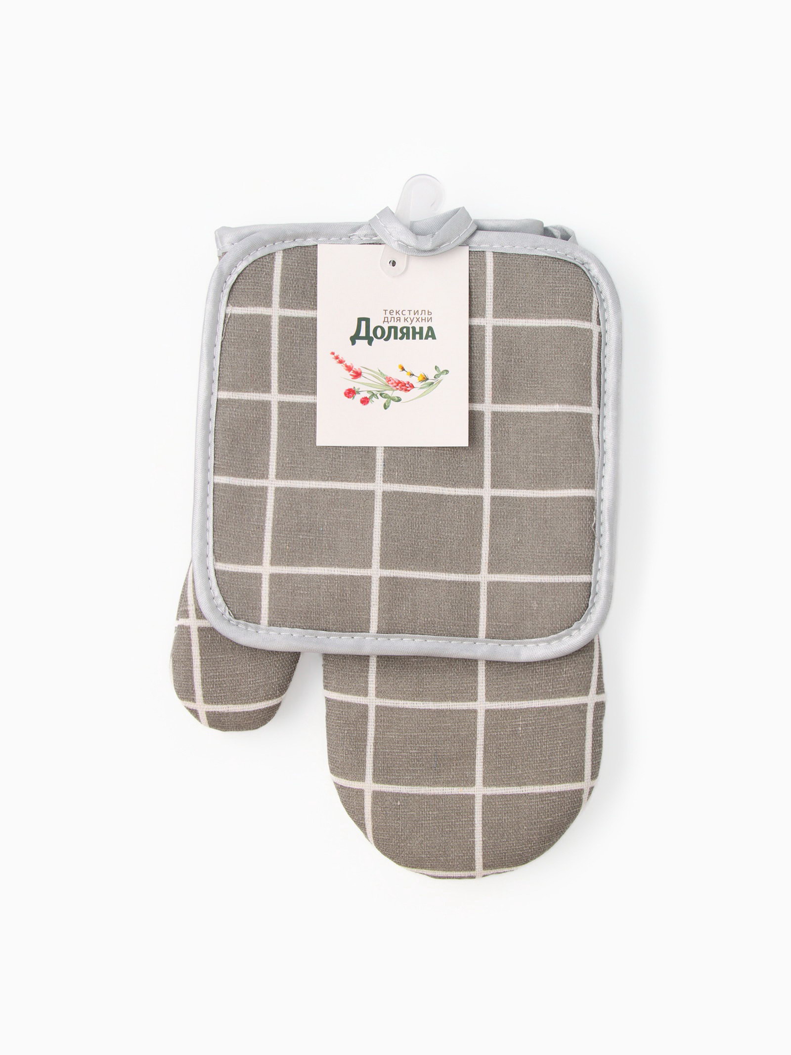 Кухонный набор "Клетка" цв.серый, прихватка 17x17 см, рукавица 26x16 см,100% п/э, Доляна, Китай