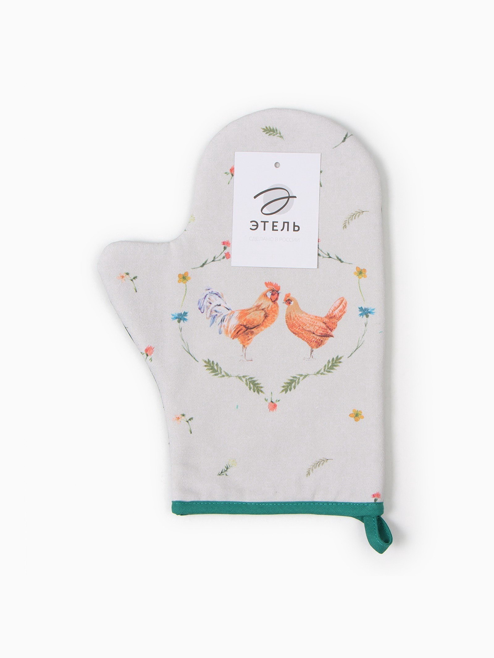 Варежка-прихватка "Этель. Курочка и петух", 20x28 см, саржа, 100% х/л, ватин 250 г/?2, Этель, Россия