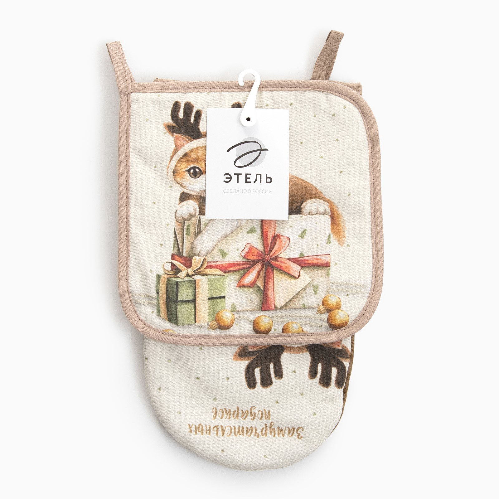 Набор кухонный "Этель. Замурчательных подарков" варежка 15x28 см, прихватка 19x19 см,100%хл, Этель, Россия