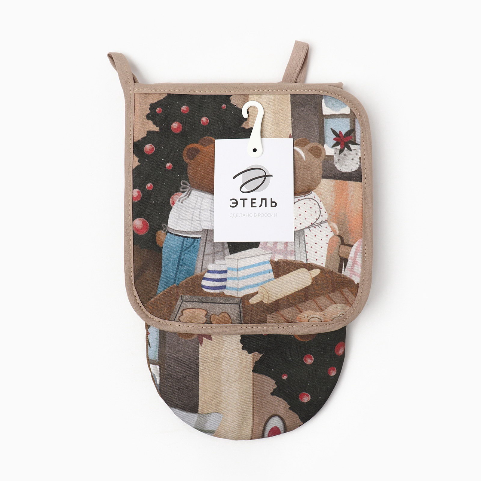 Набор подарочный Bears, варежка 15x28 см, прихватка 19x19 см, хлопок 100%, Этель, Россия