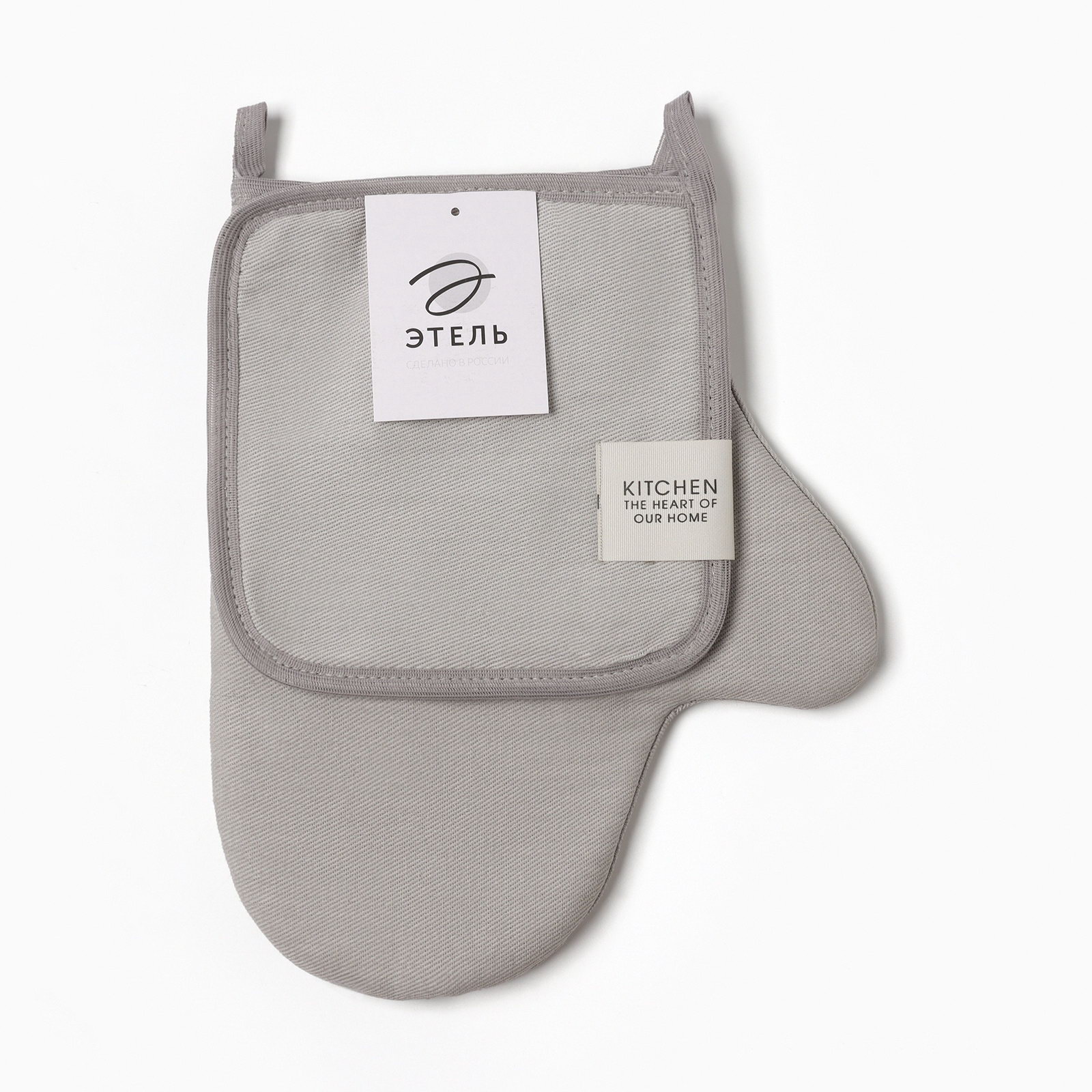 Кухонный набор Kitchen light gray: прихватка, варежка-прихватка, светло-серый, Этель, Россия