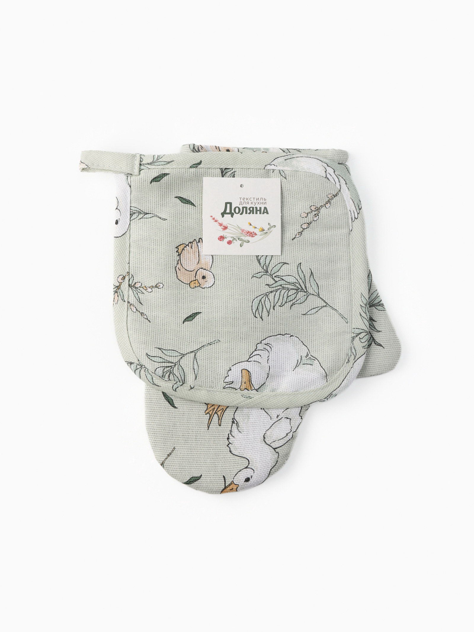 Кухонный набор Divine day: варежка 20x27 см, прихватка 19x19 см, рогожка 164 г/?2, 100% хлопок, Доляна, Россия